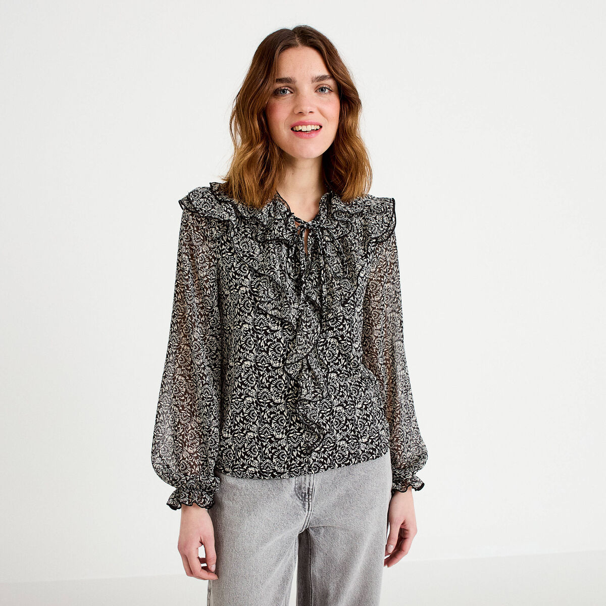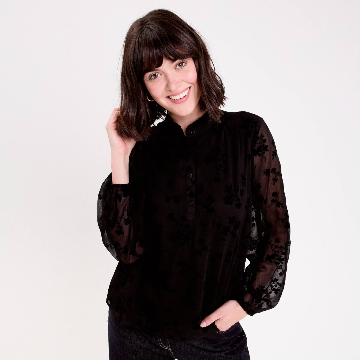 Blouse à volants noir femme