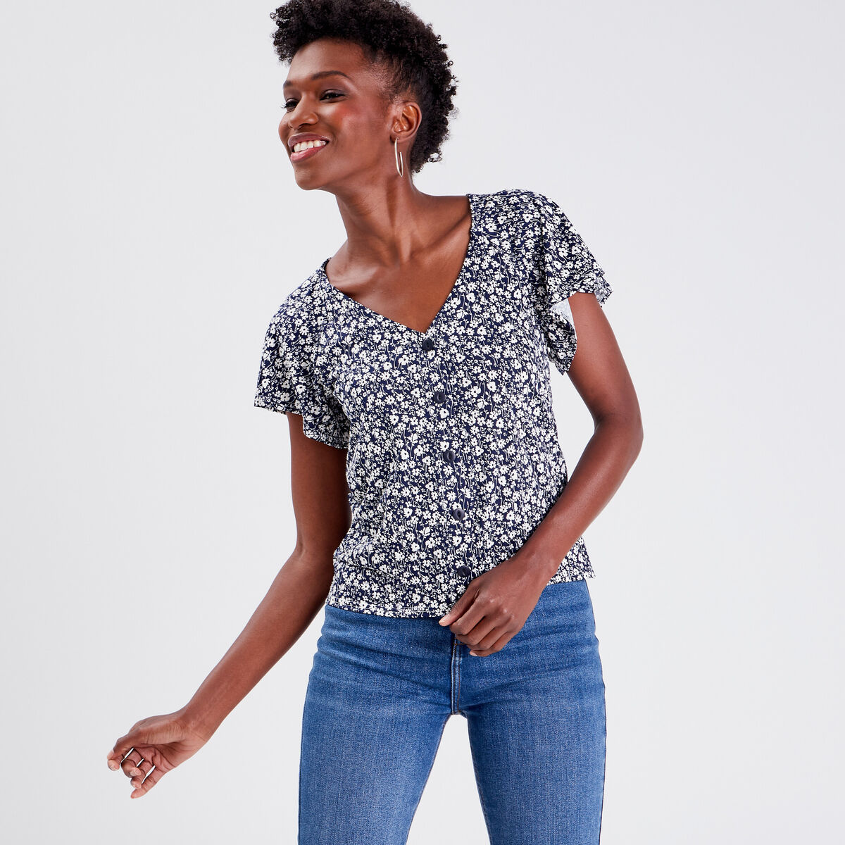 Blouse Billie - manches courtes bleu marine femme