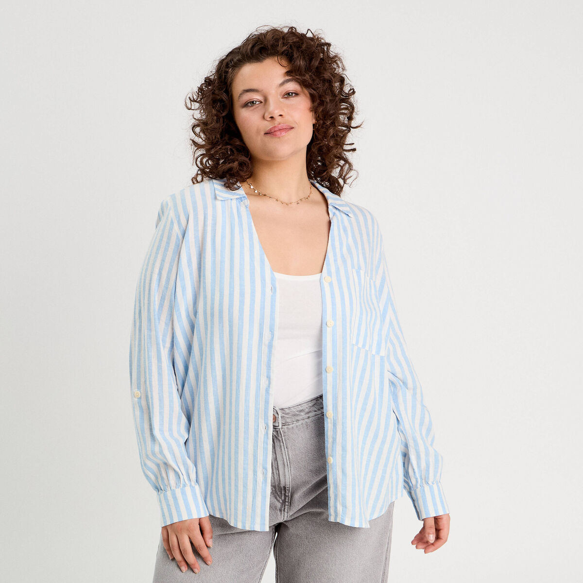 Chemise manches longues contenant du lin bleu femme