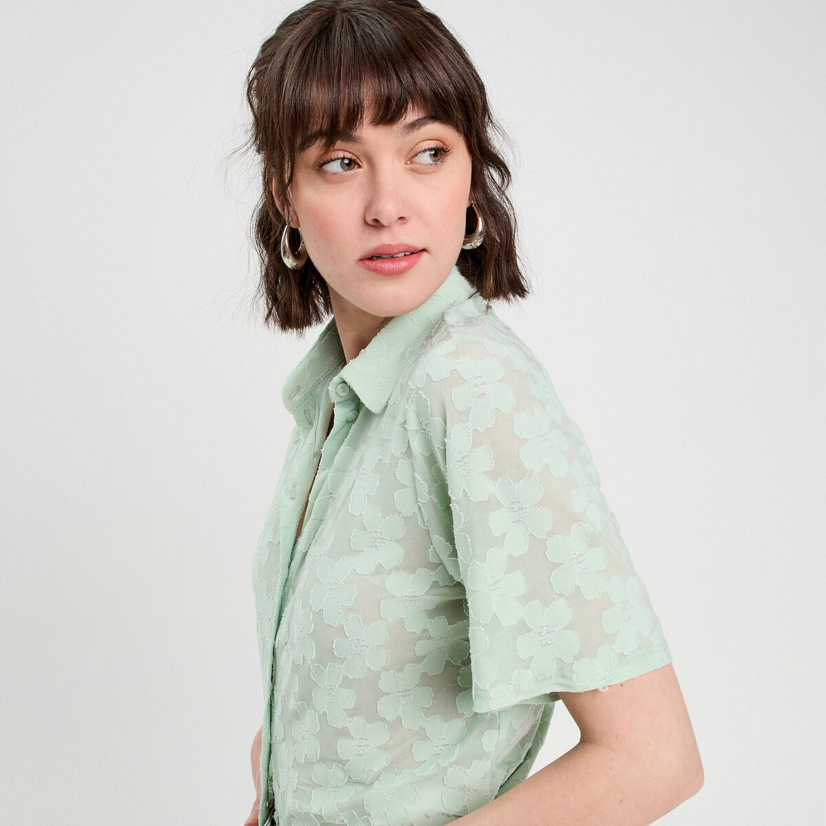 Chemise manches courtes vert clair femme