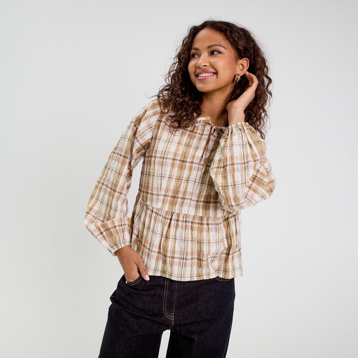 Blouse manches longues beige femme