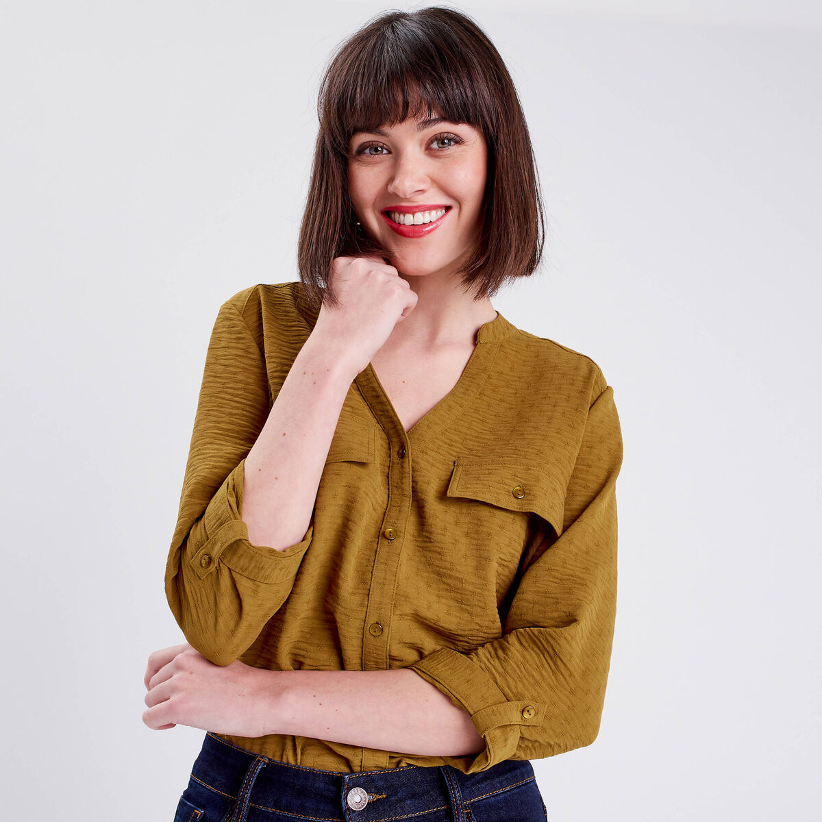 Chemise manches 3/4 vert olive femme