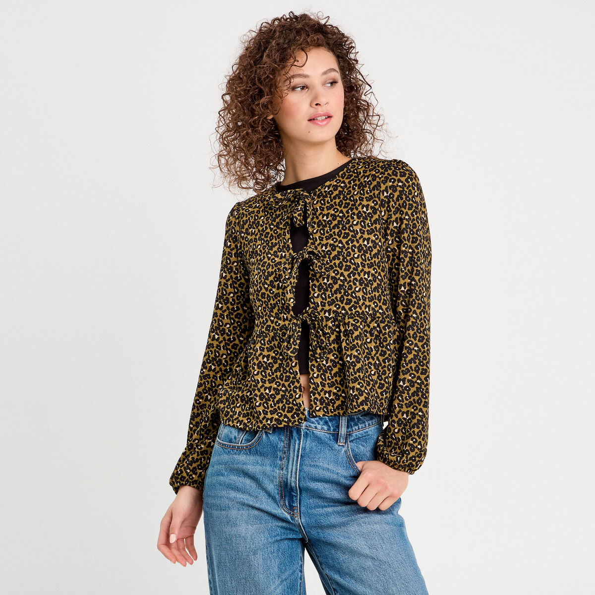 Blouse nouée manches longues vert kaki femme