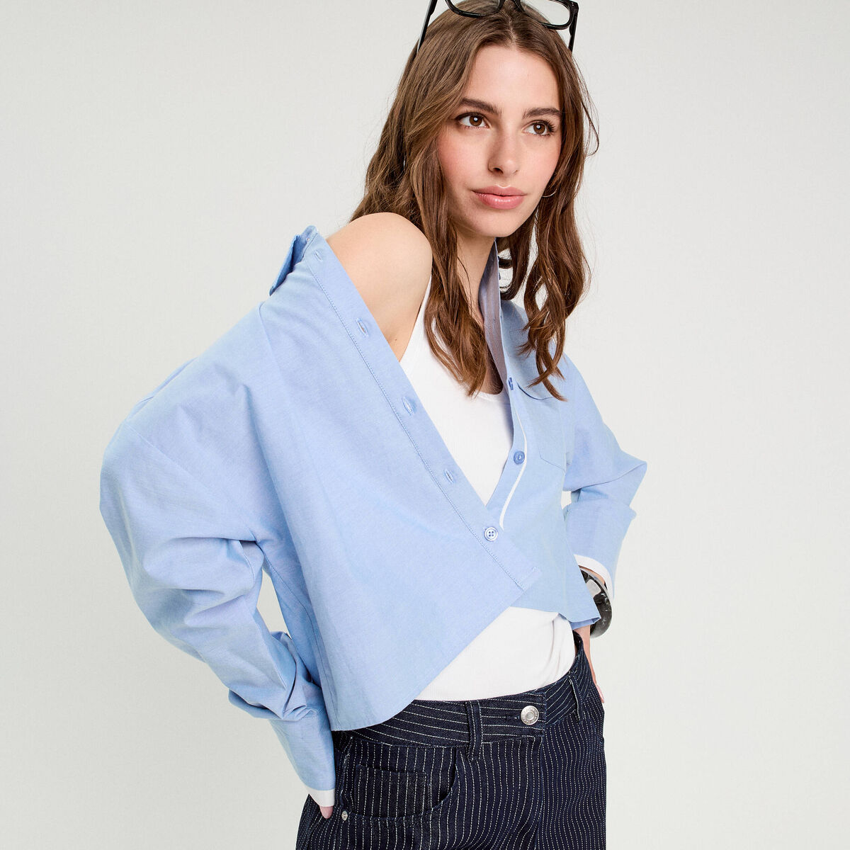 Chemise manches longues bleu ciel femme