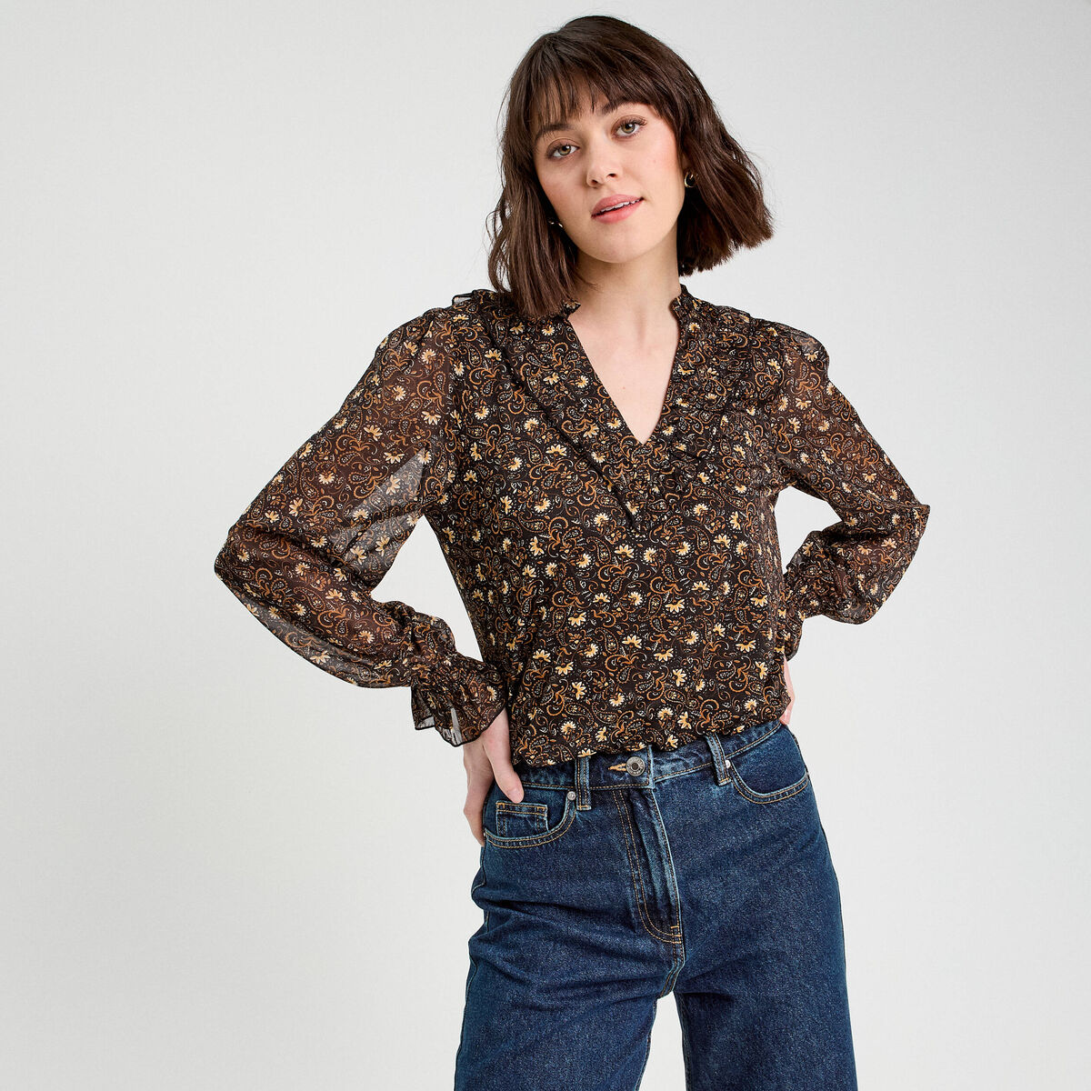 Blouse manches longues marron femme