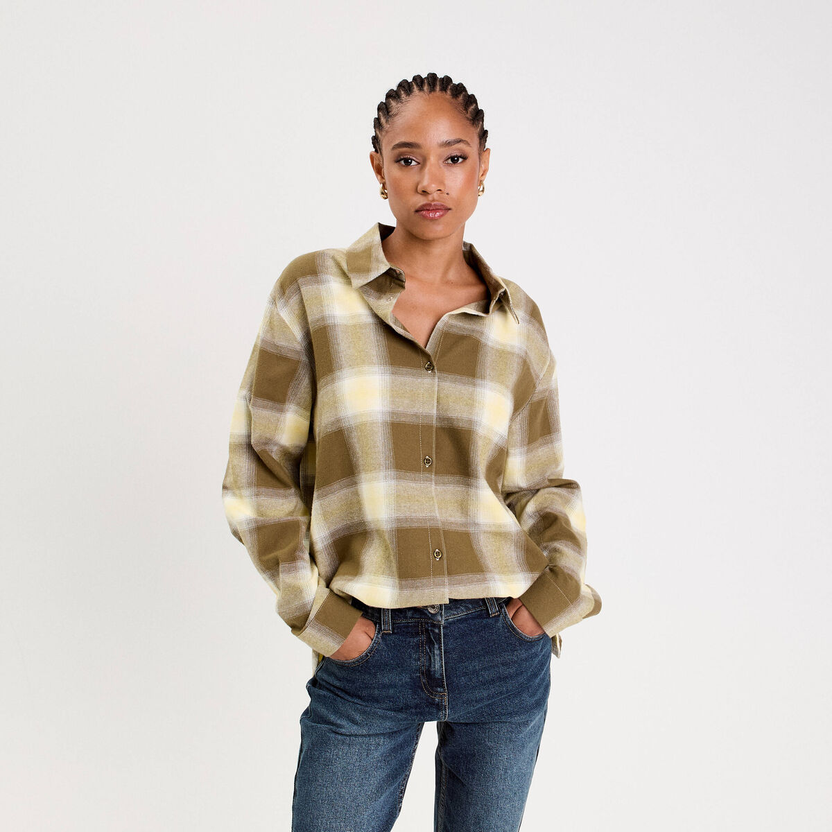Chemise oversize manches longues vert femme