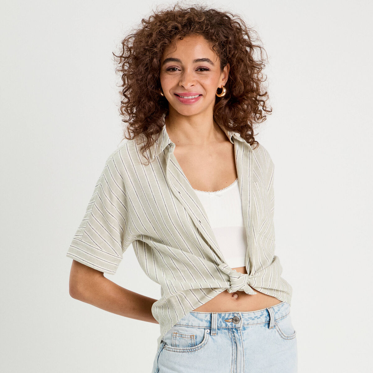 Chemise manches courtes contenant du lin vert femme