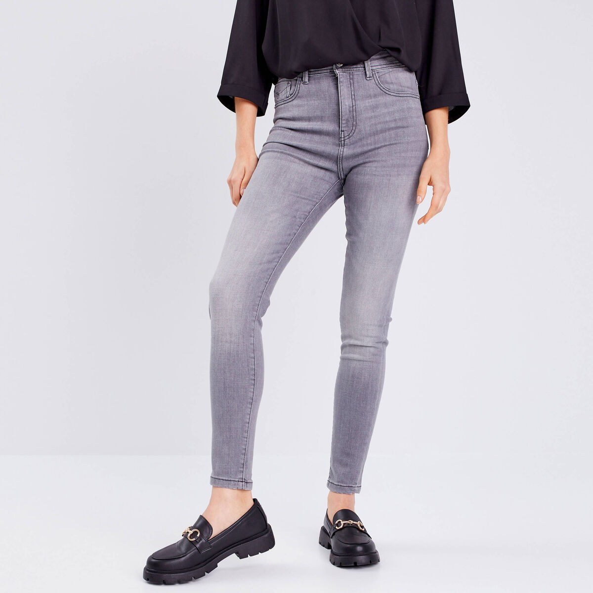 Jeans skinny taille haute denim gris clair femme