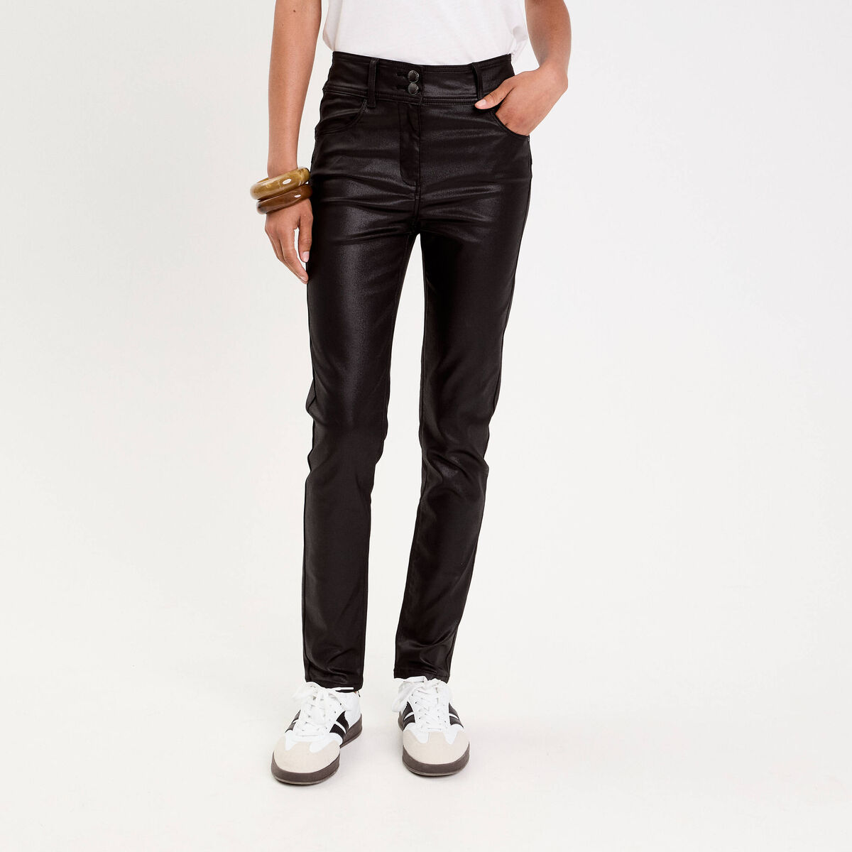 Pantalon enduit slim push-up denim noir enduit femme