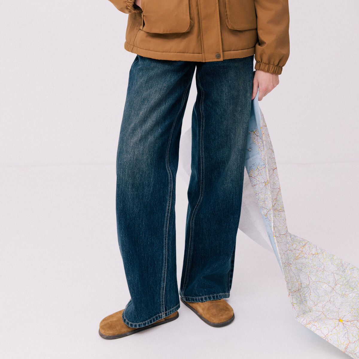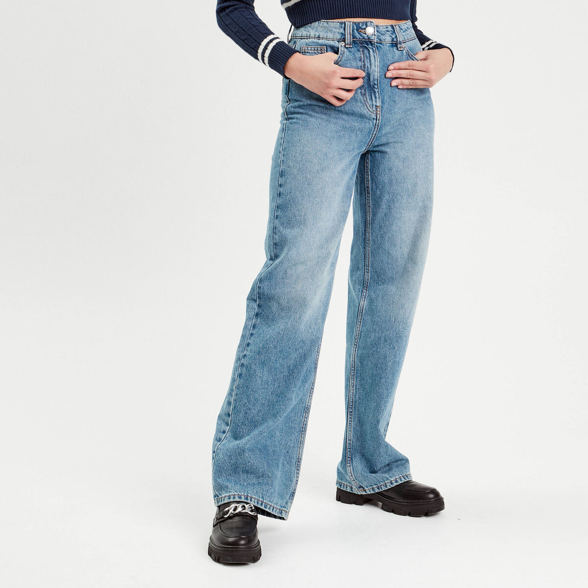 Jeans wide leg taille haute denim double stone femme