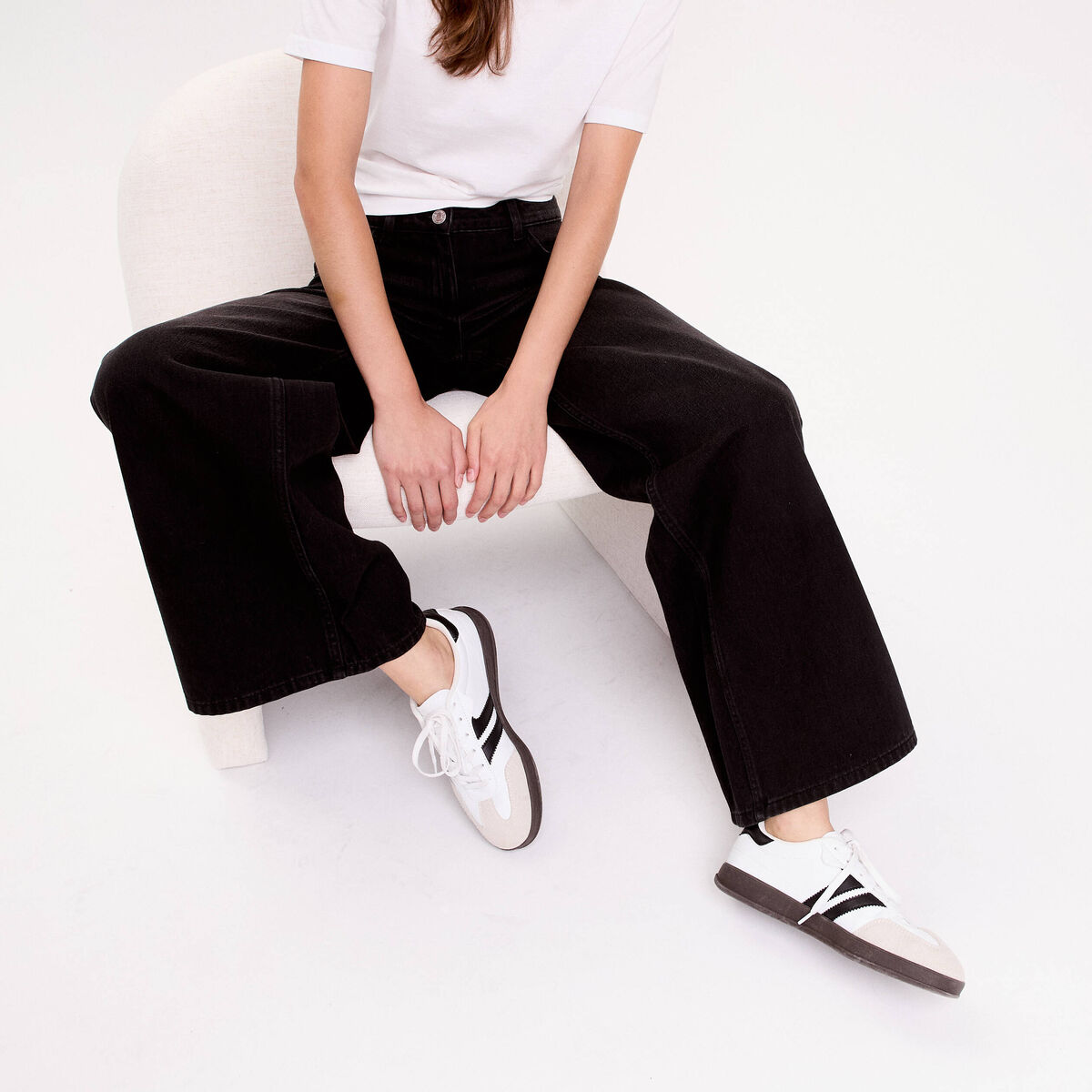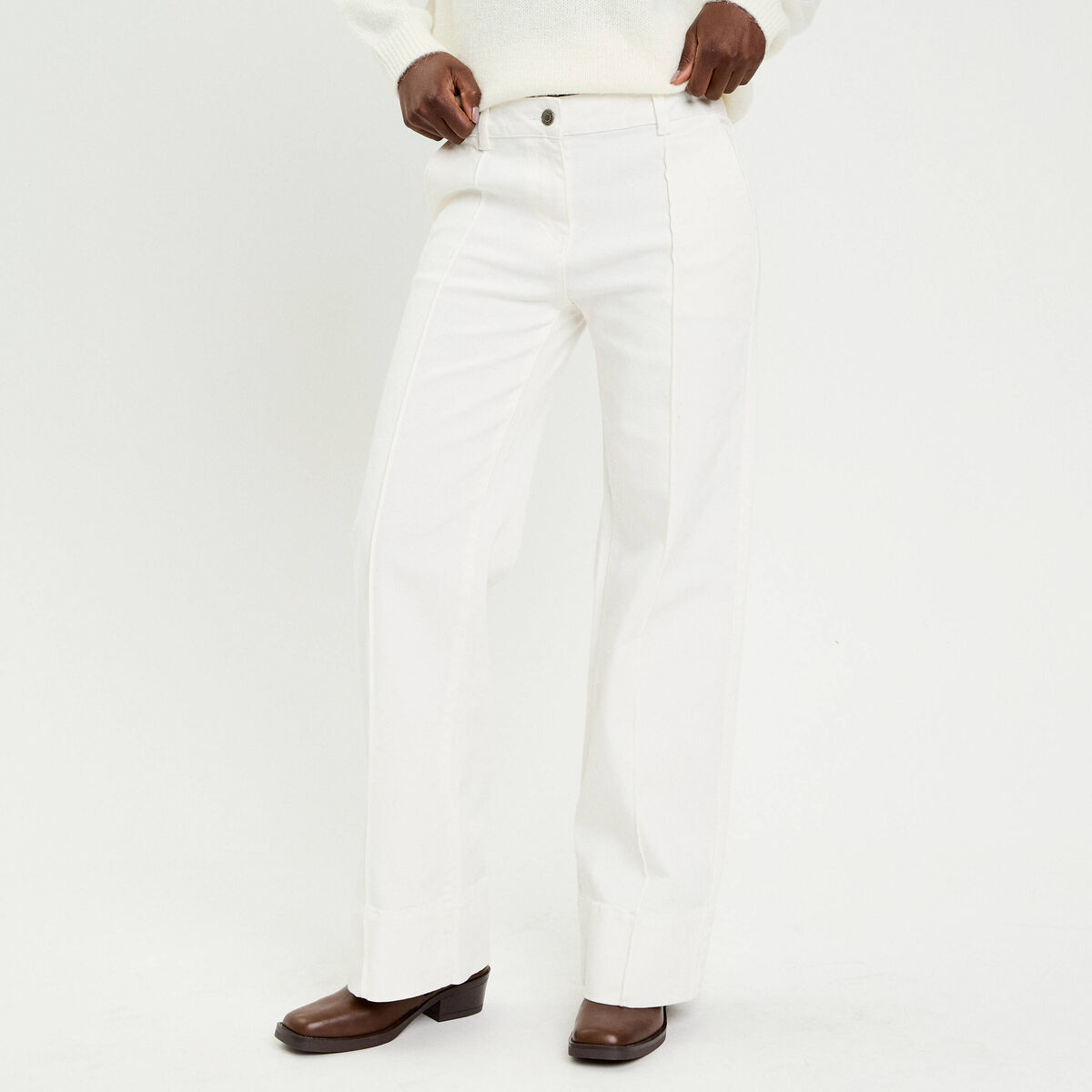 Jean wide leg taille standard denim blanc femme