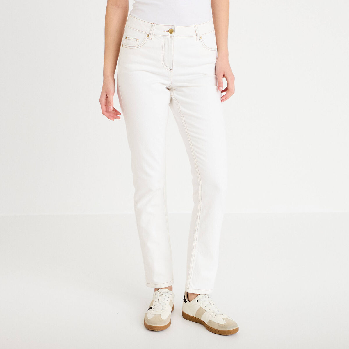 Jean slim taille standard denim blanc femme