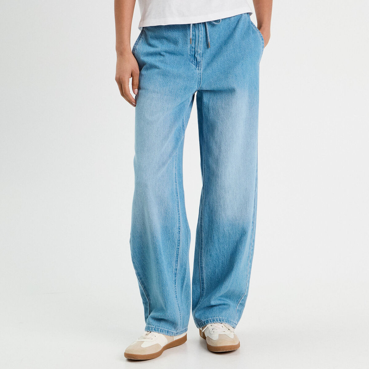 Jeans wide leg taille élastiquée denim double stone femme