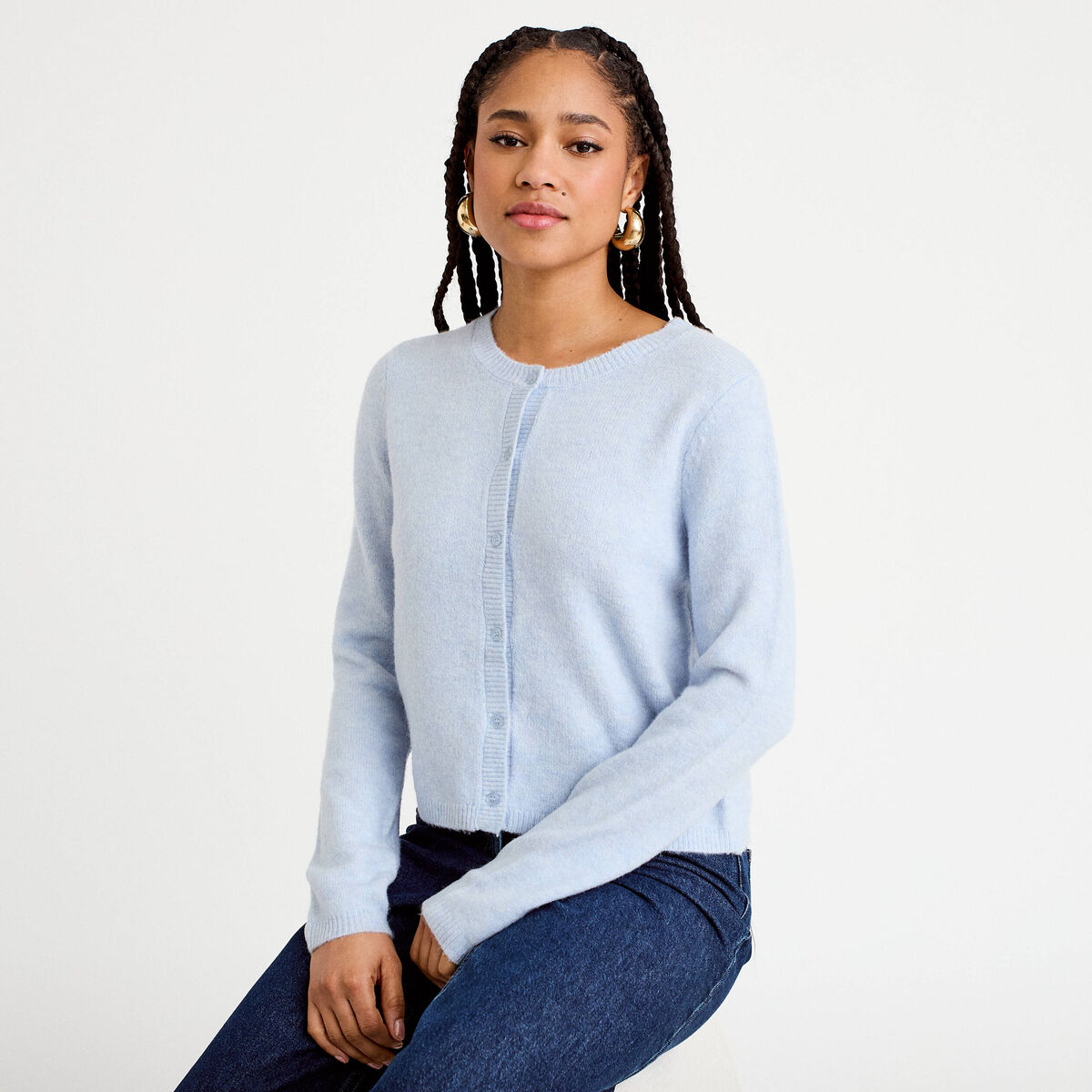 Gilet boutonné manches longues denim snow gris femme