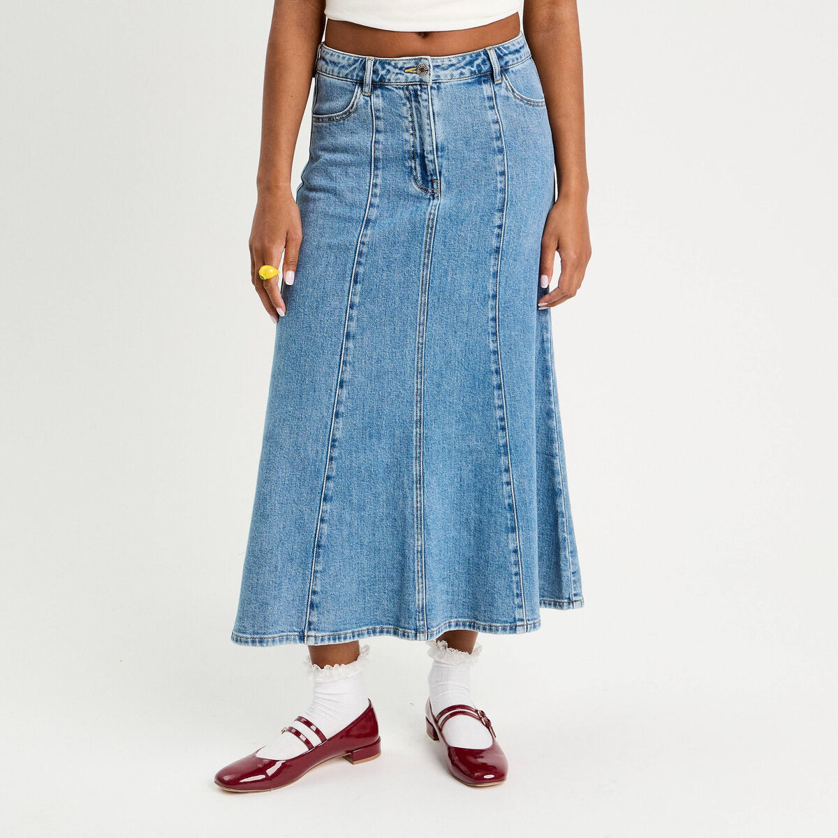 Jupe midi trapèze en jean denim double stone femme