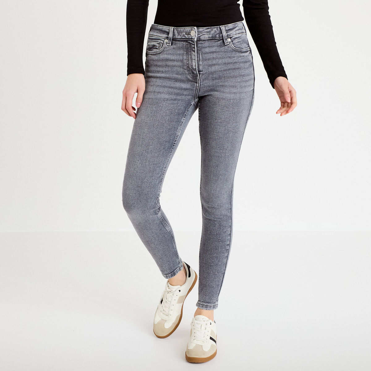 Jean skinny push-up taille standard denim gris clair femme