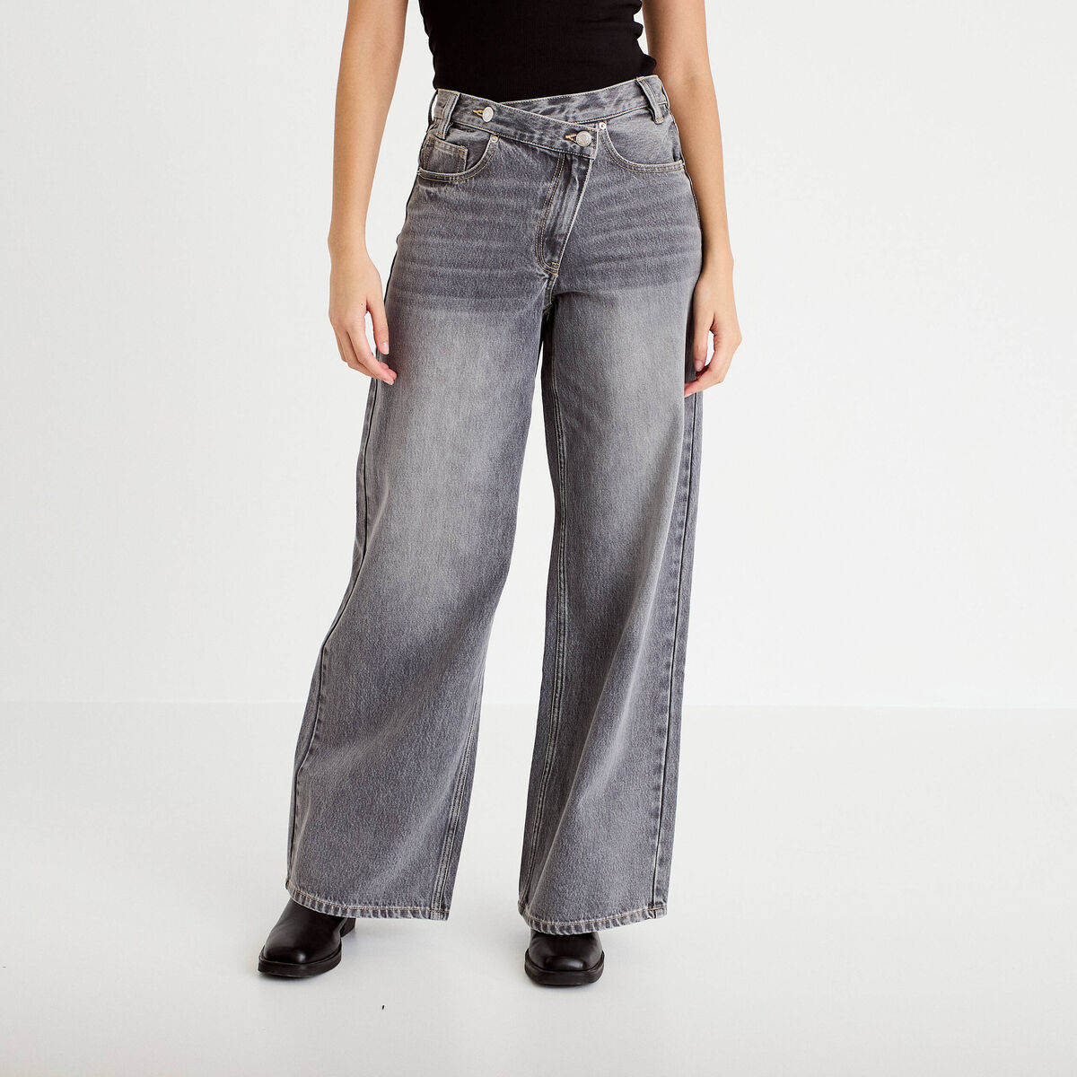 Jean wide leg taille haute denim denim gris femme
