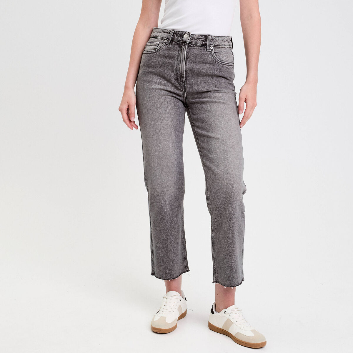 Jeans droit taille haute denim gris femme