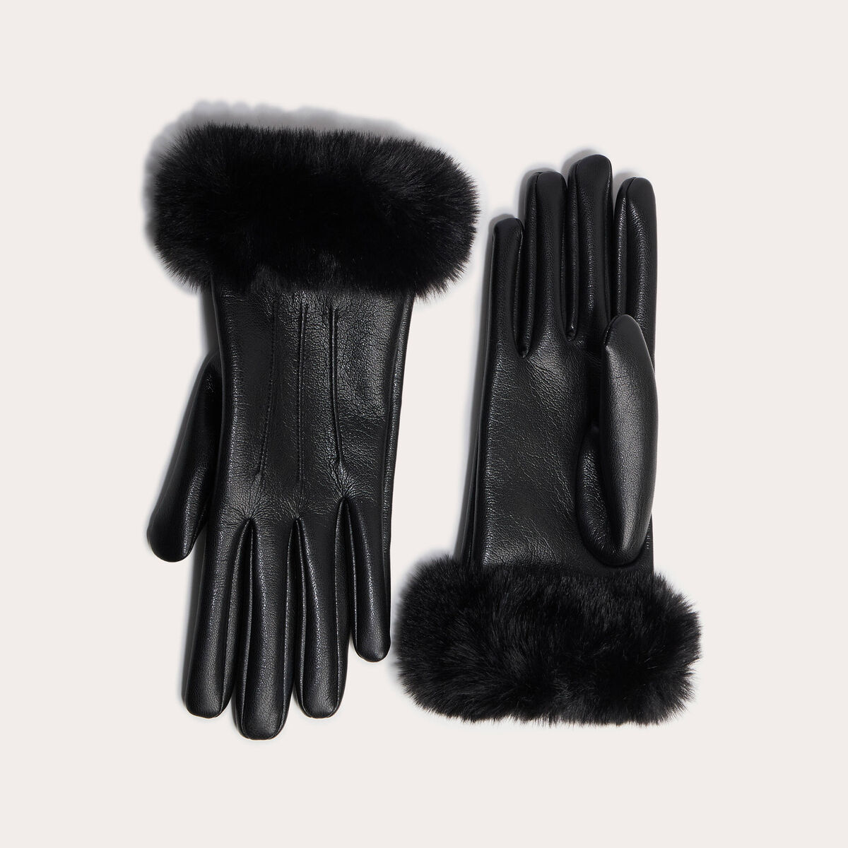 Gants détails fausse fourrure noir femme