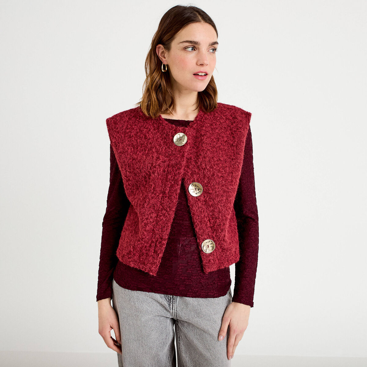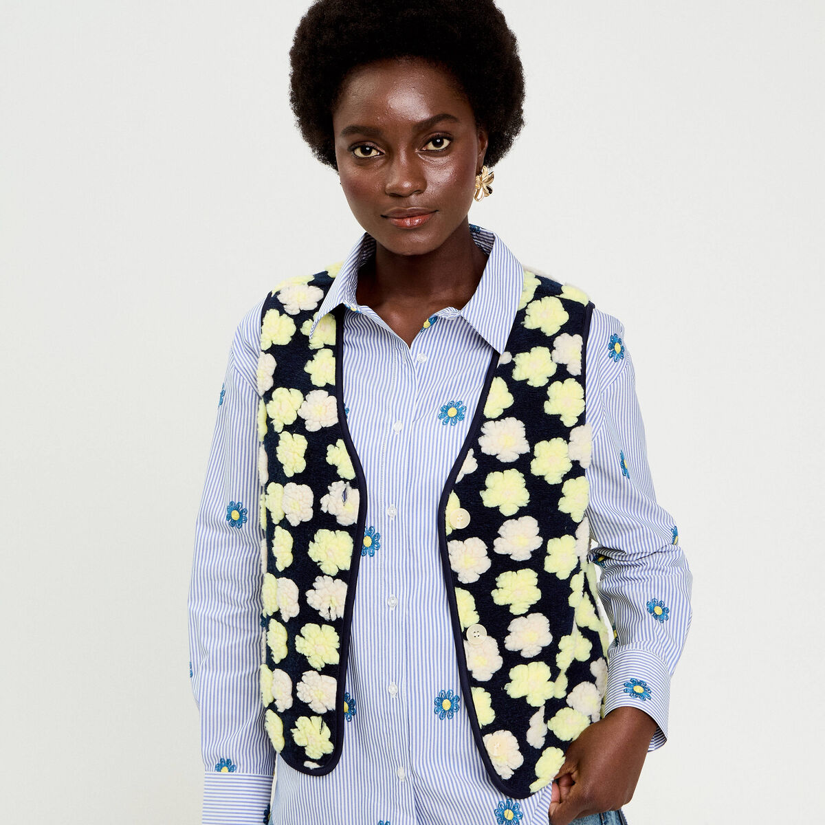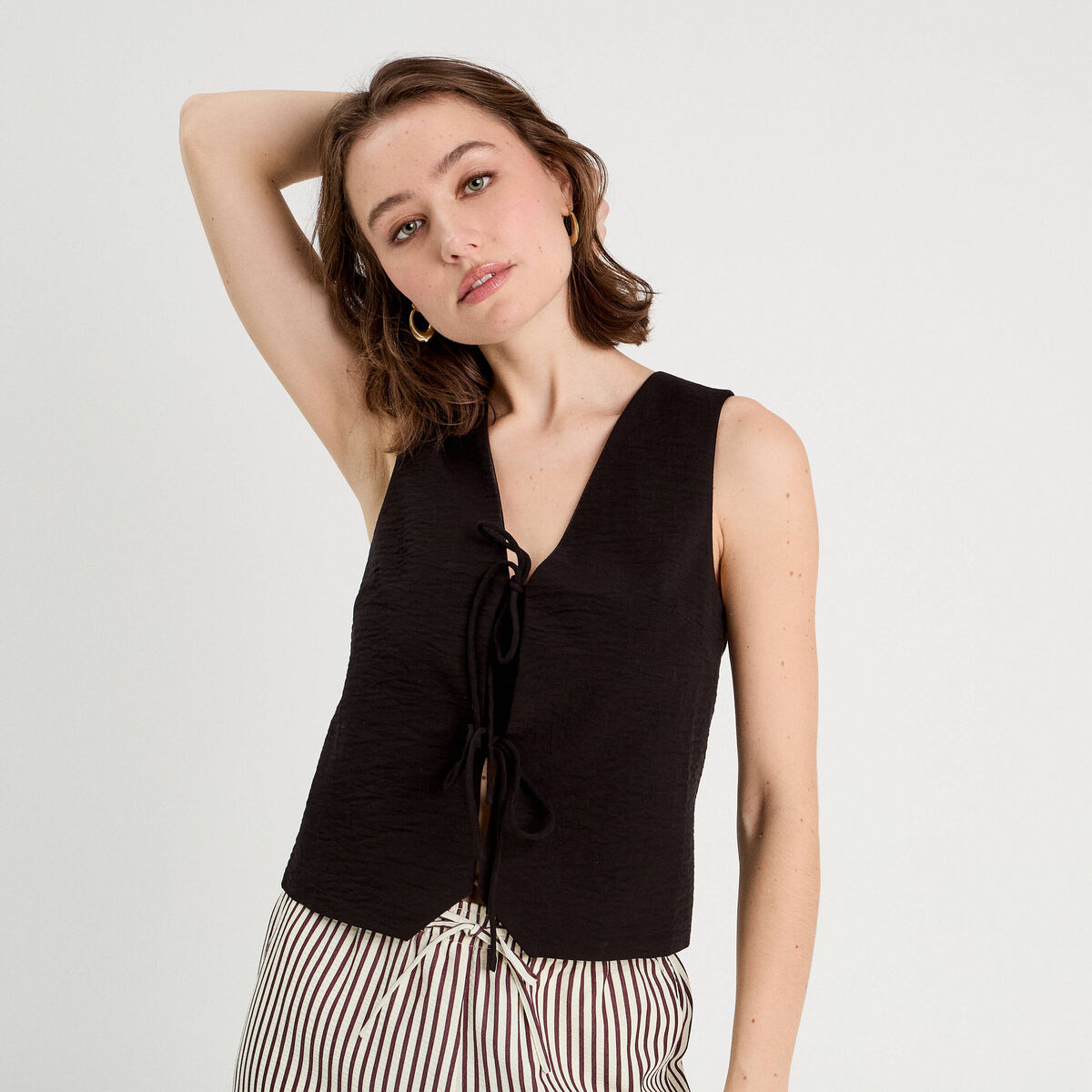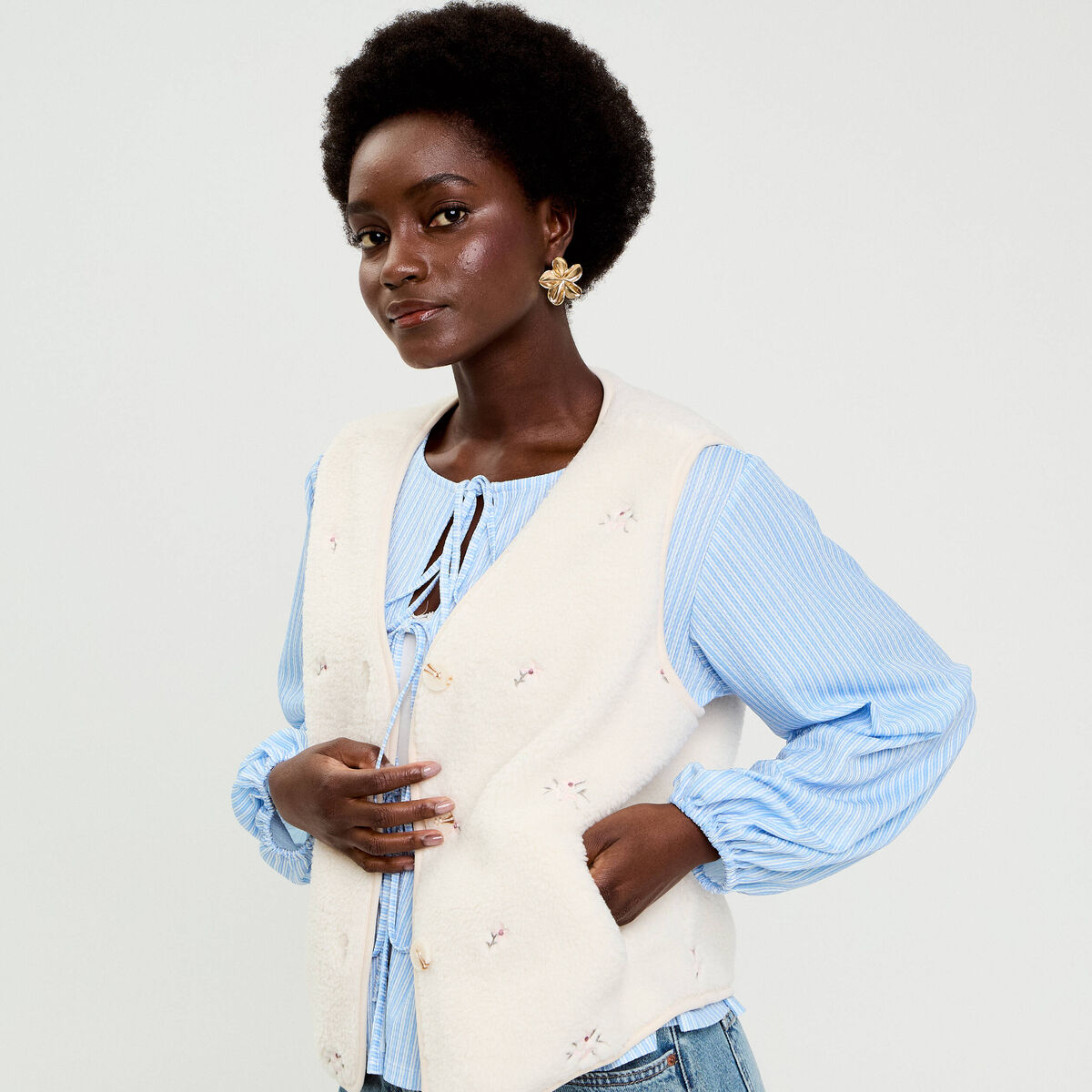 Gilet sans manches col v fausse fourrure bleu marine femme
