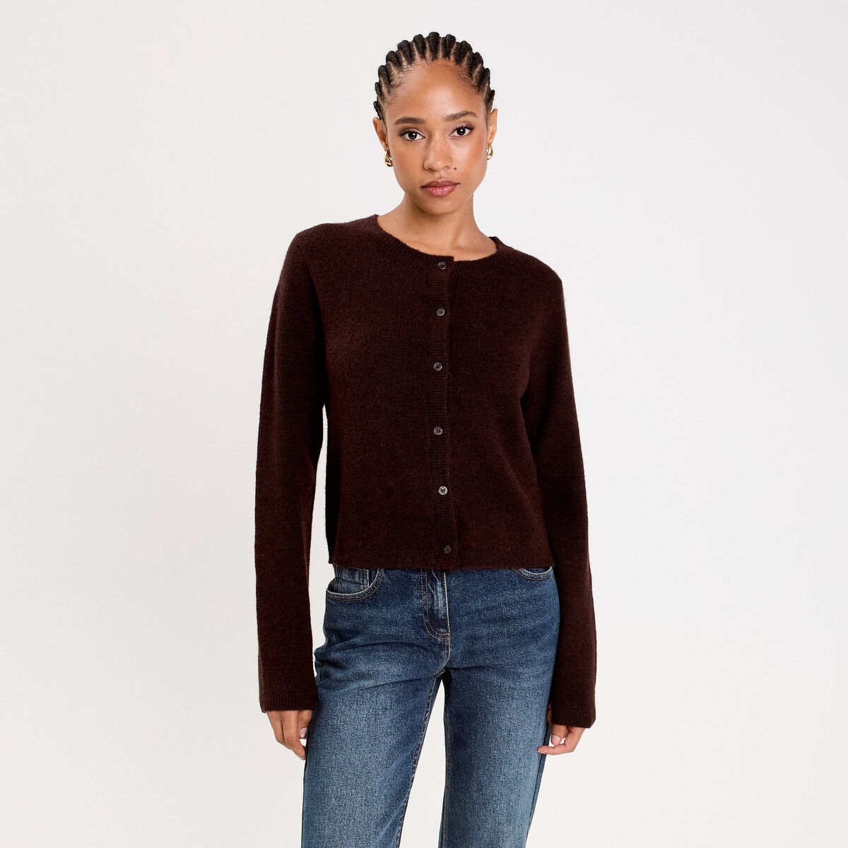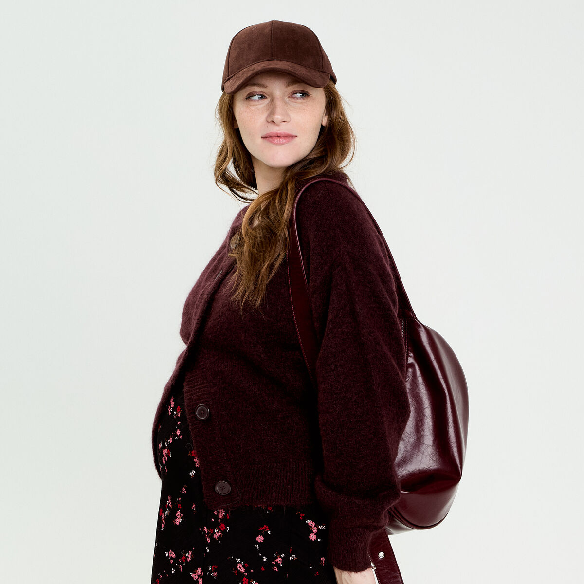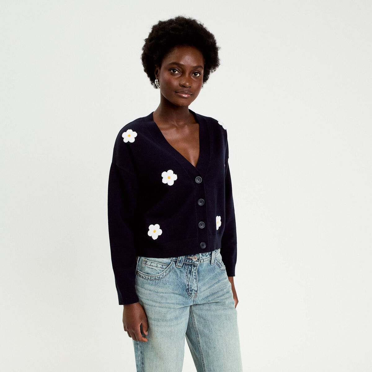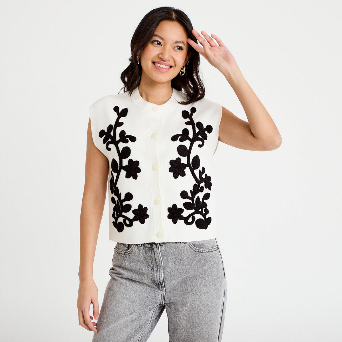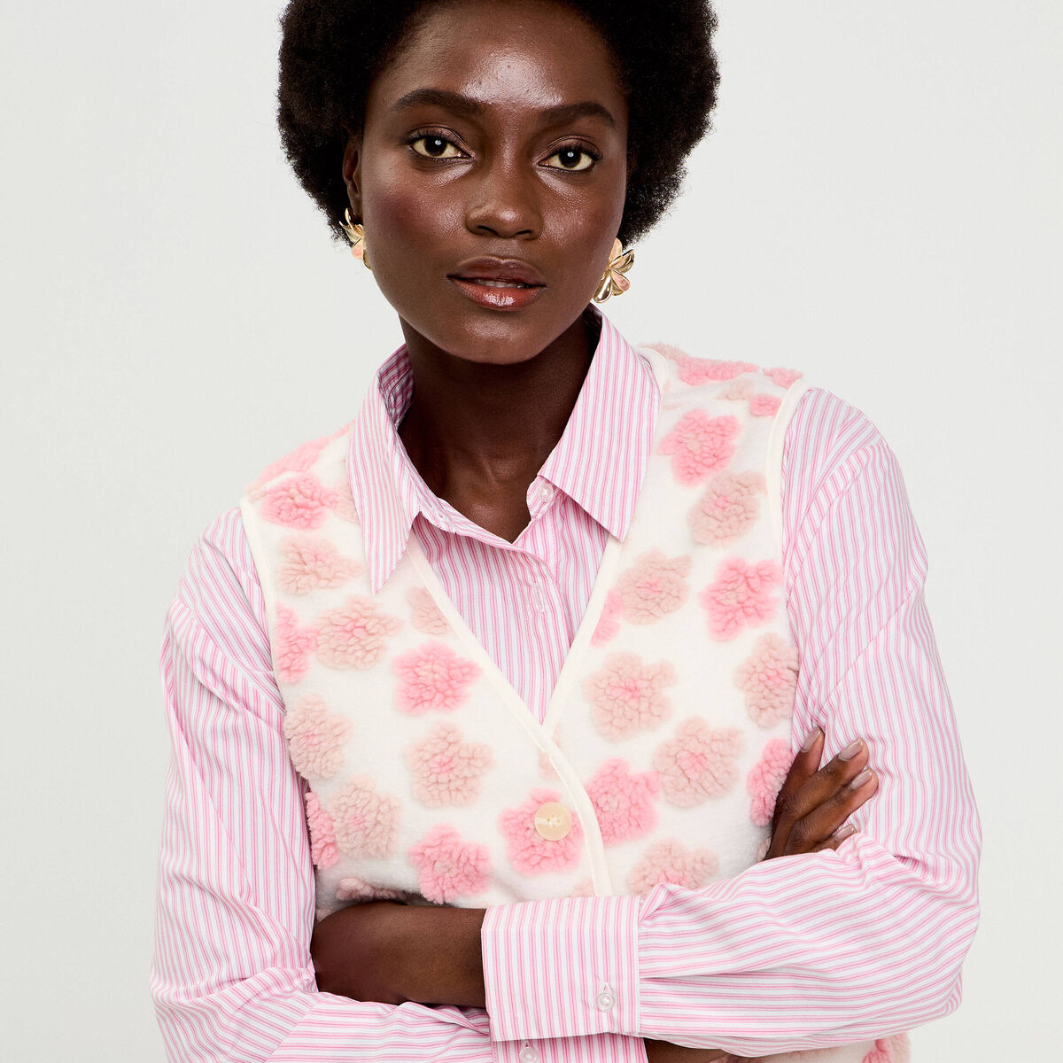 Gilet sans manches col v fausse fourrure bleu marine femme