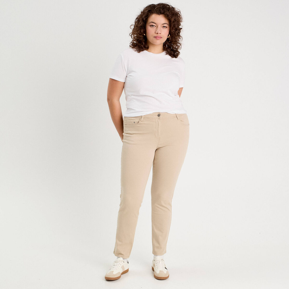Jeans slim 5 poches taupe femme