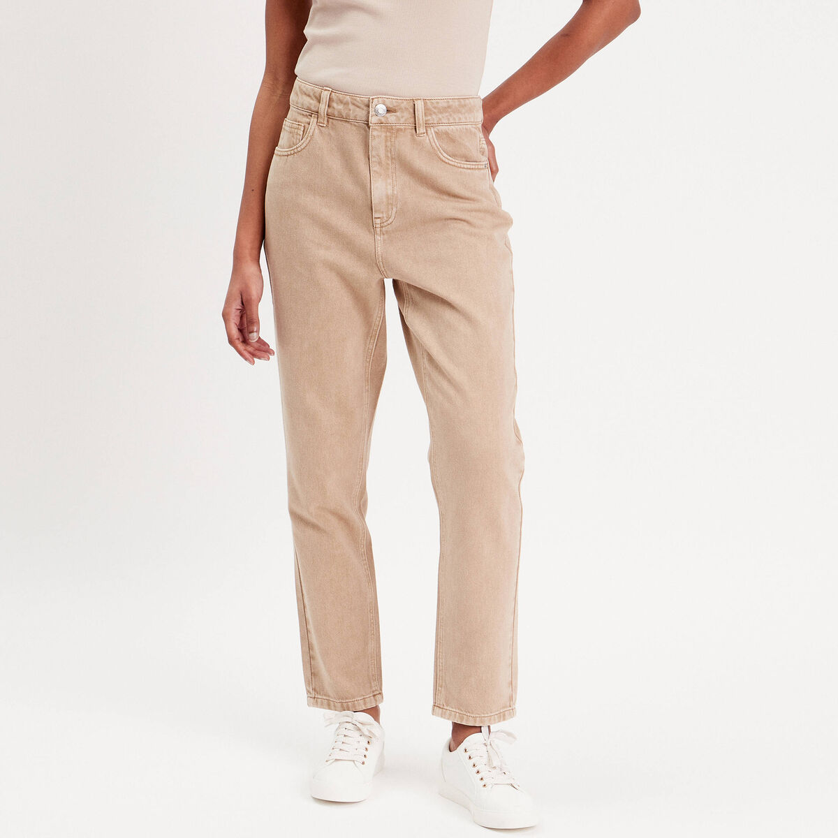 Jeans mom taille haute sable femme