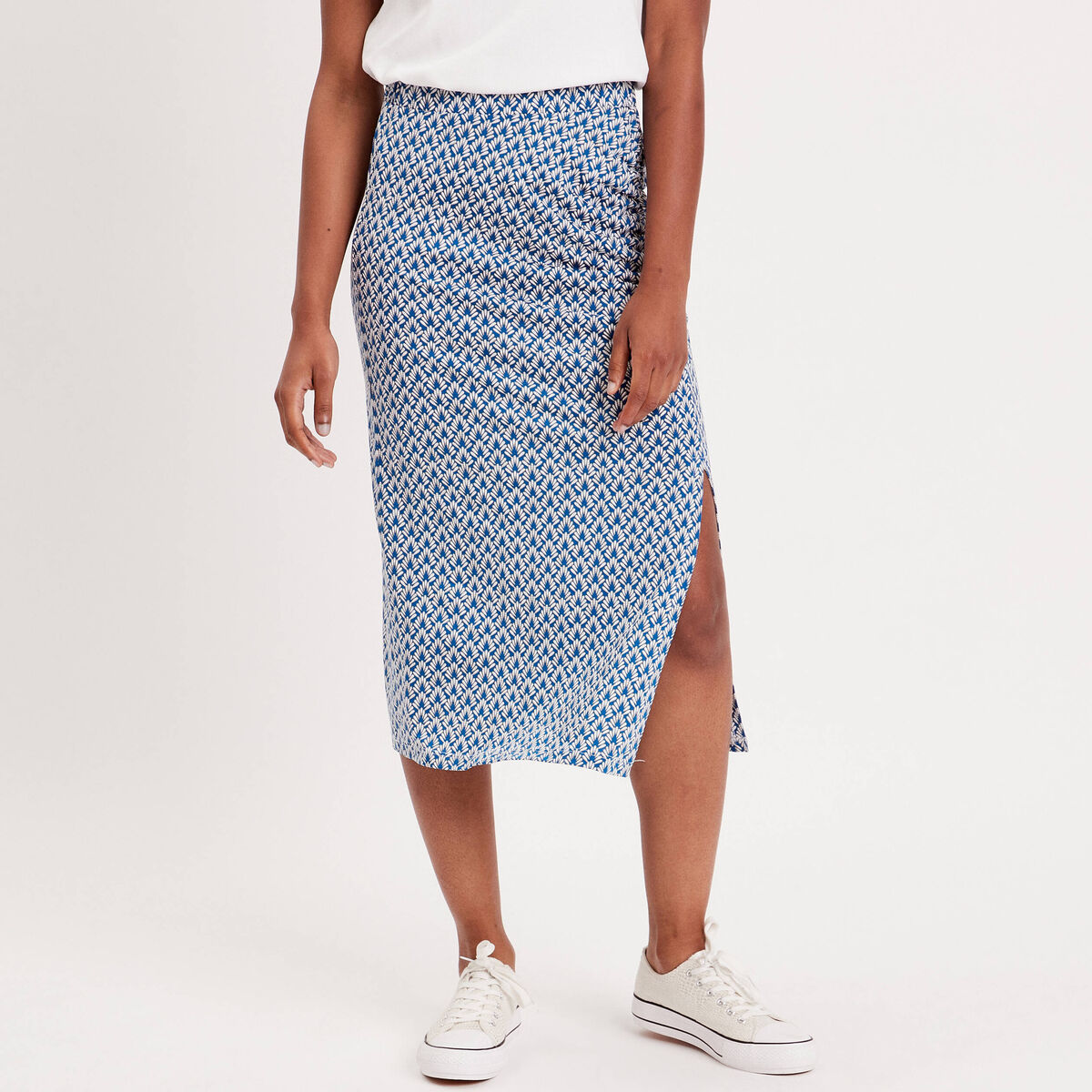 Jupe longue droite fronces bleu marine femme
