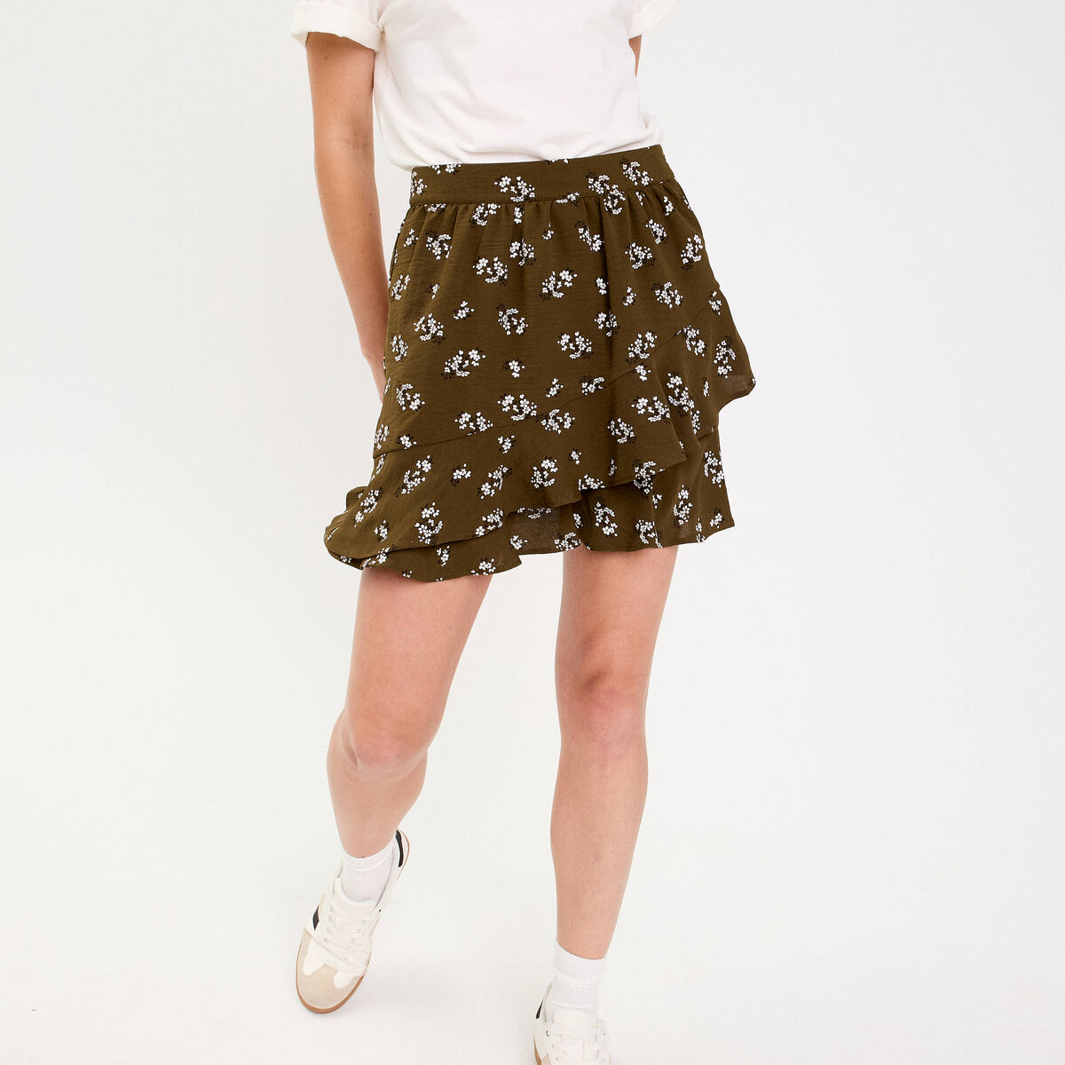 jupe courte évasée doublure recyclée vert kaki femme
