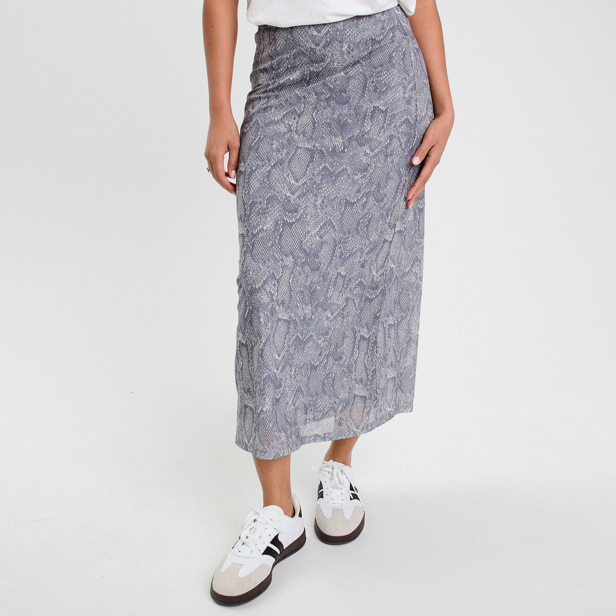 Jupe tricot midi droite gris clair femme