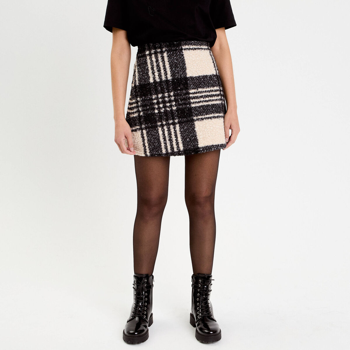 jupe courte évasée doublure recyclée noir femme