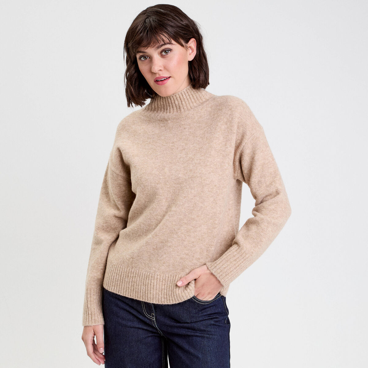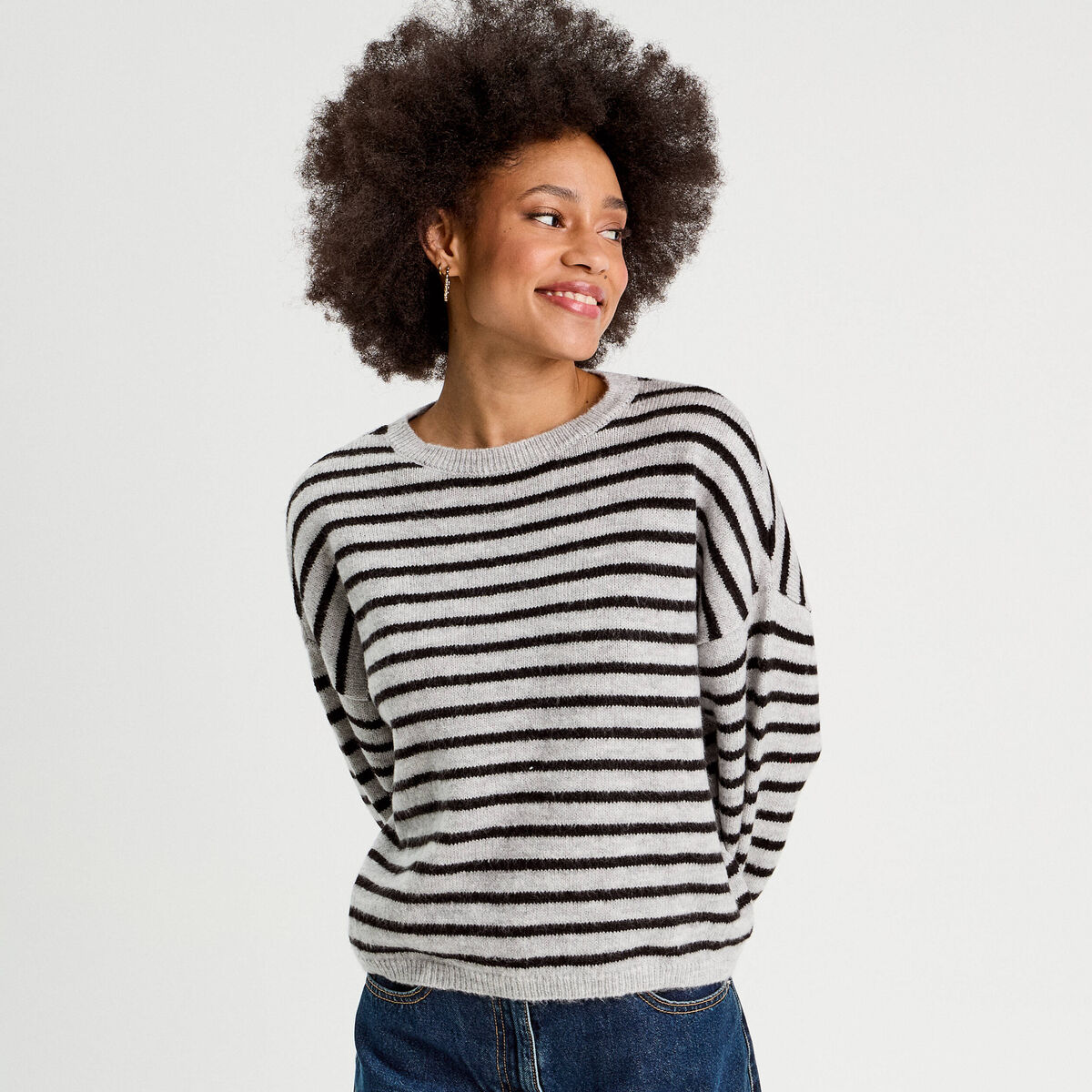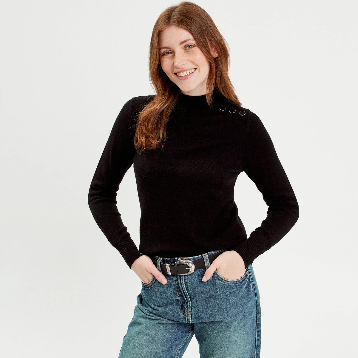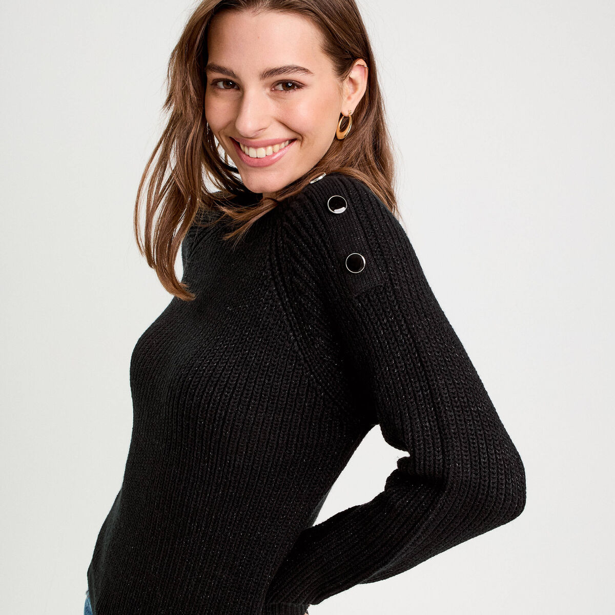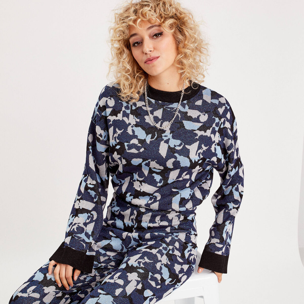 Pull 2-en-1 col chemise manches longues bleu marine femme