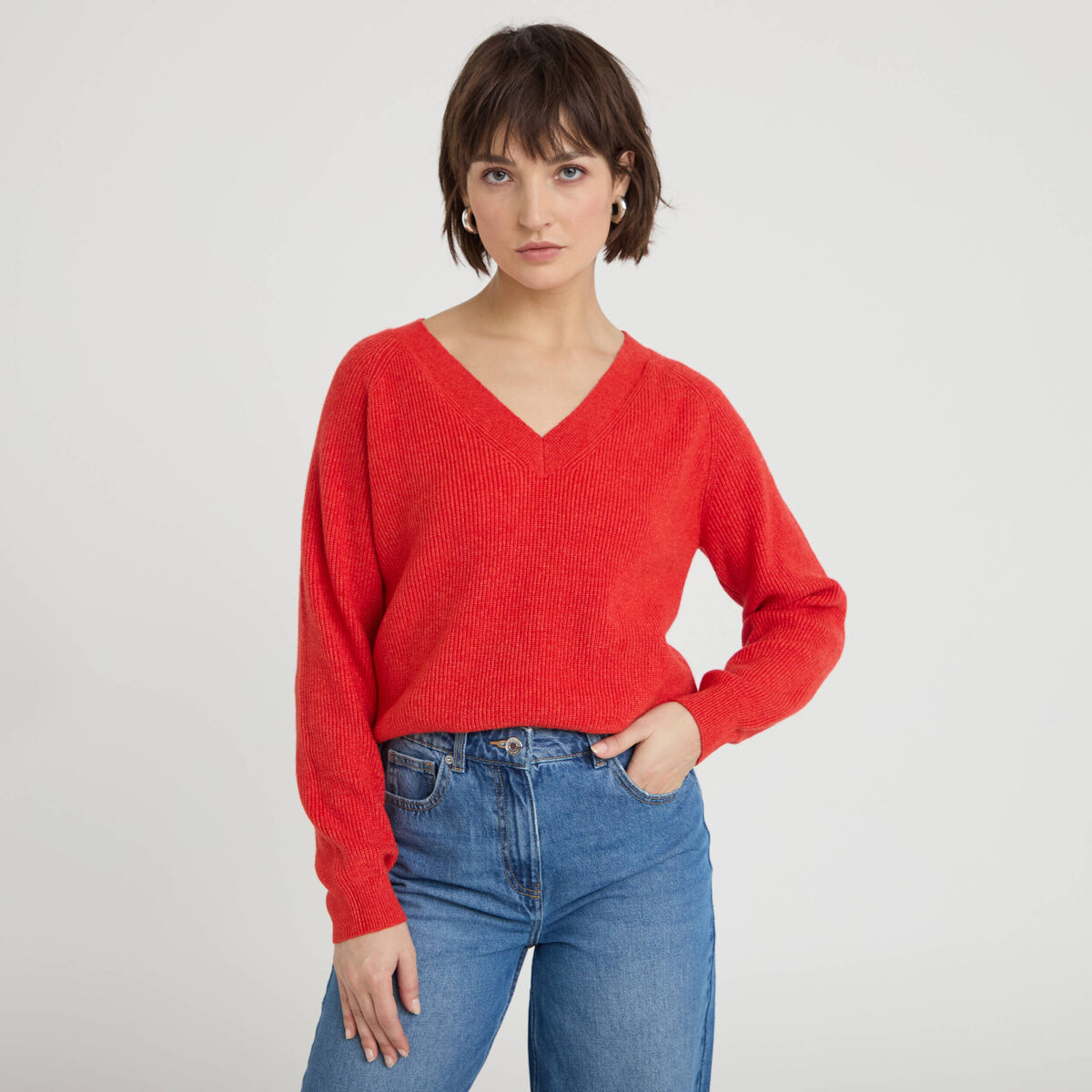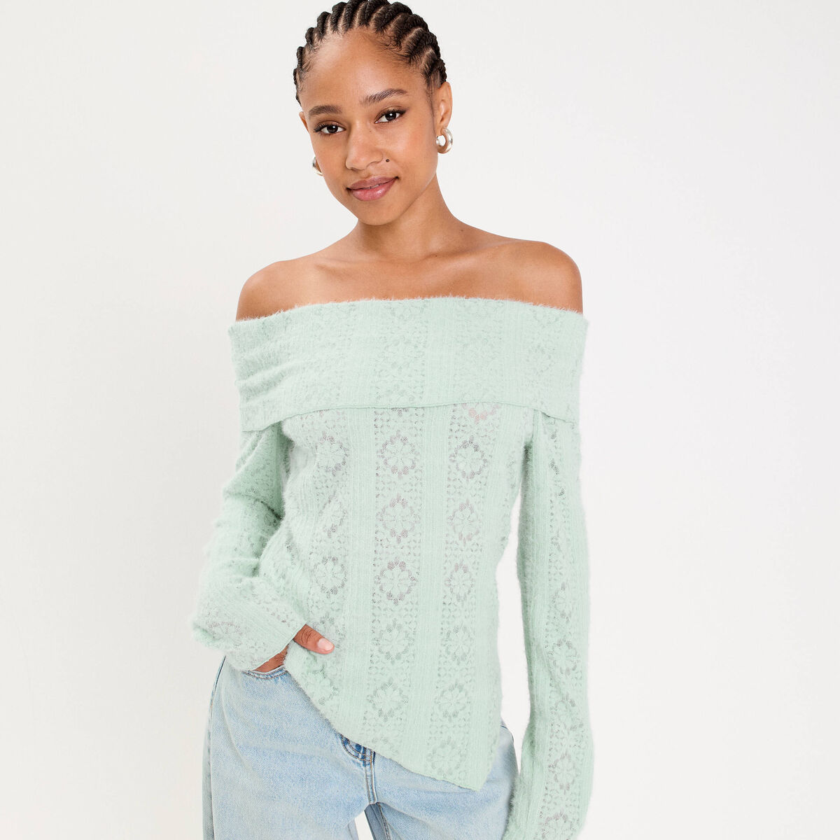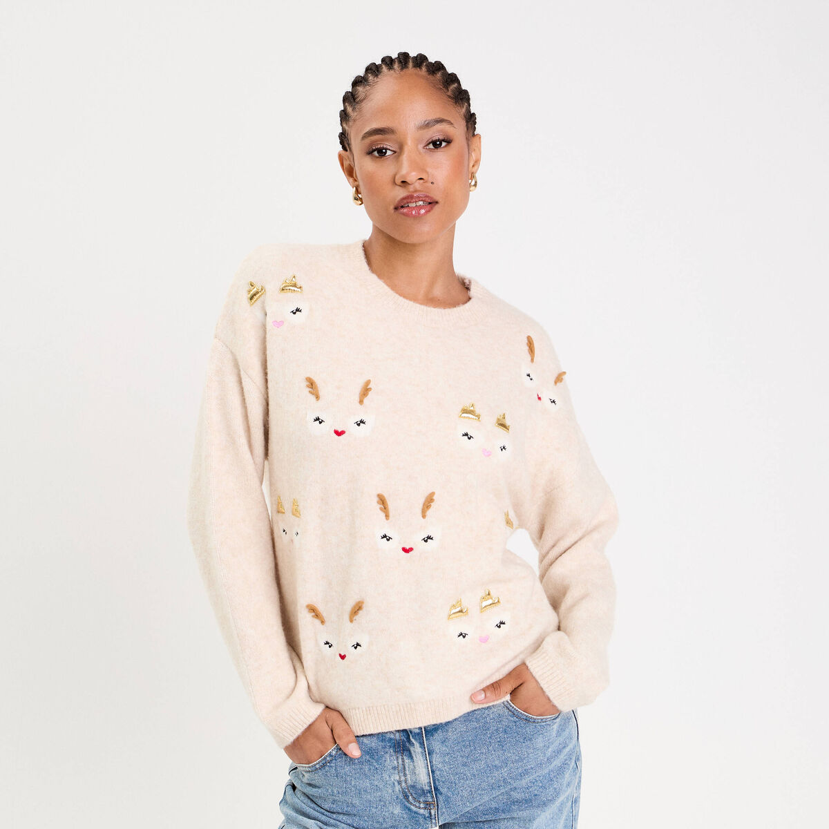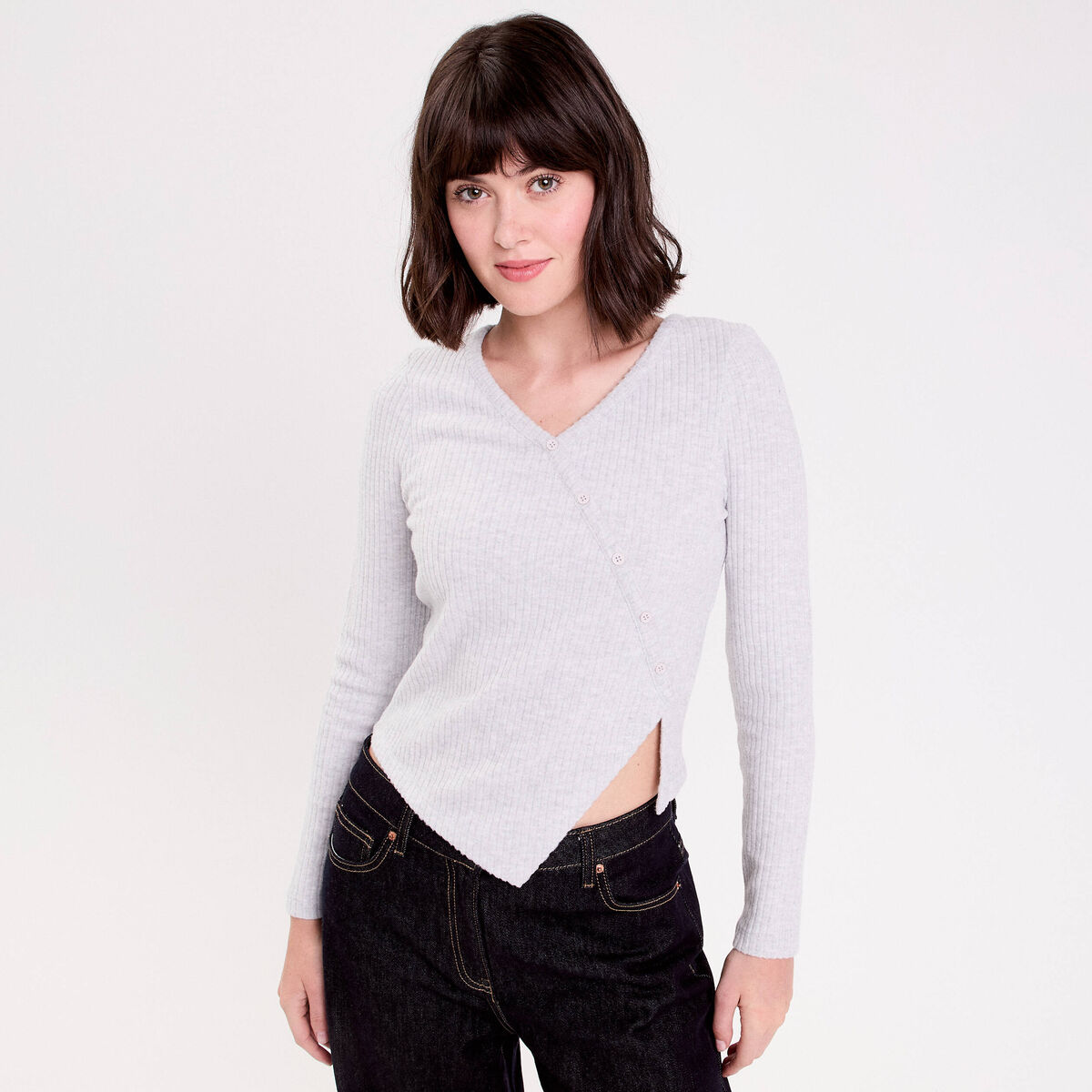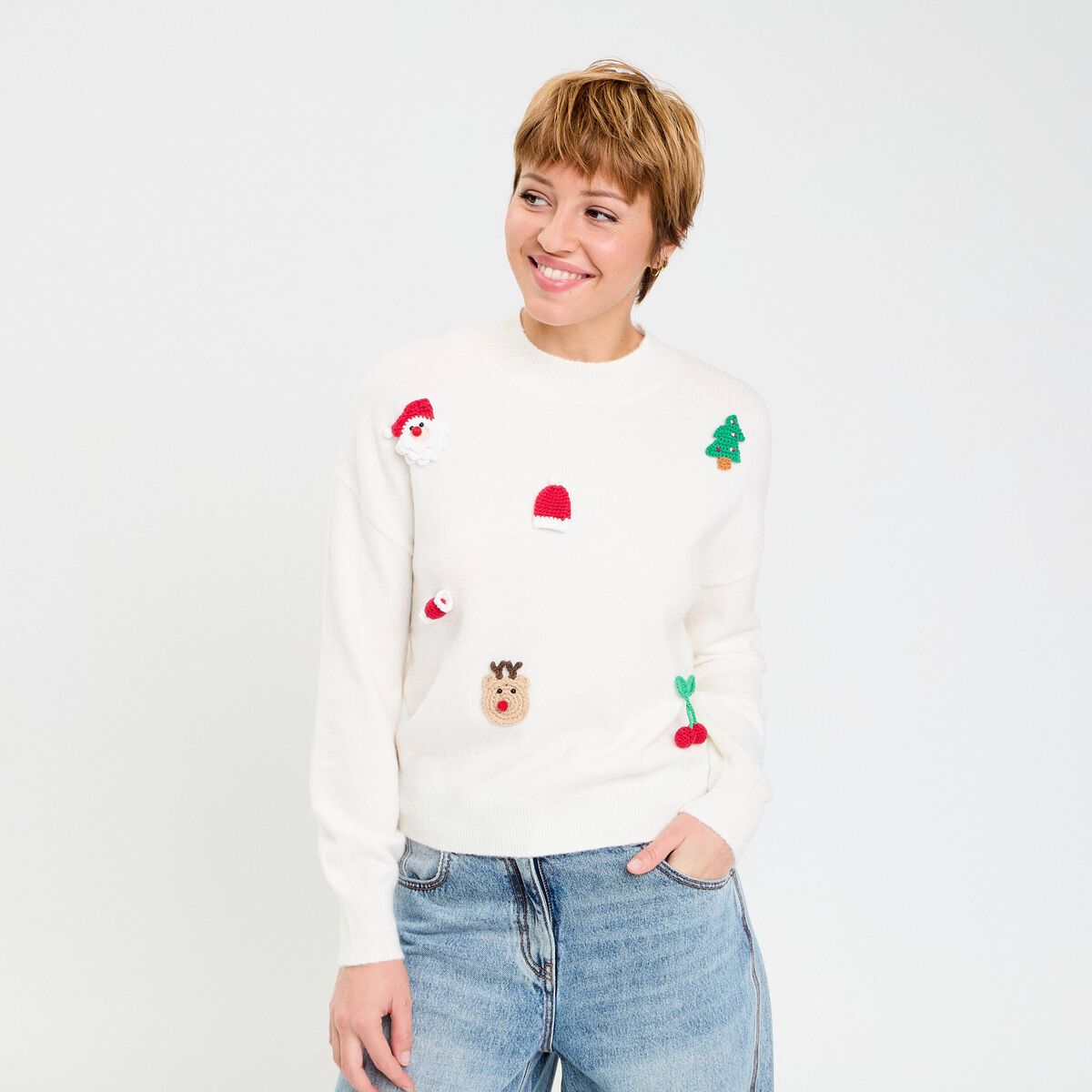 Pull 2-en-1 col chemise manches longues bleu marine femme