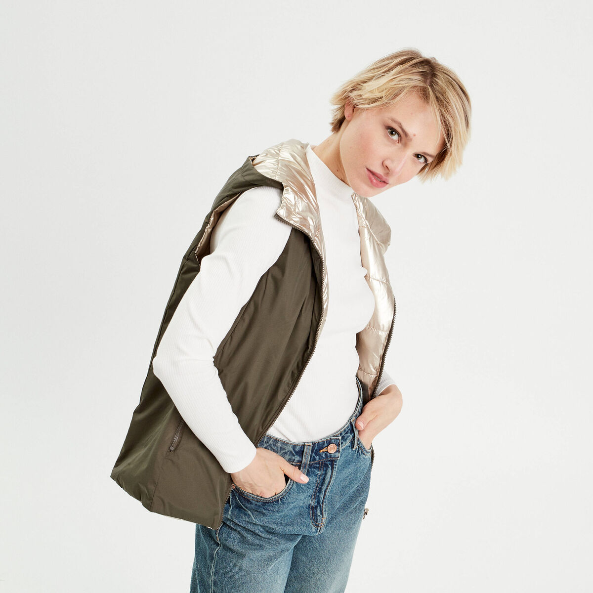 Doudoune réversible vert kaki femme