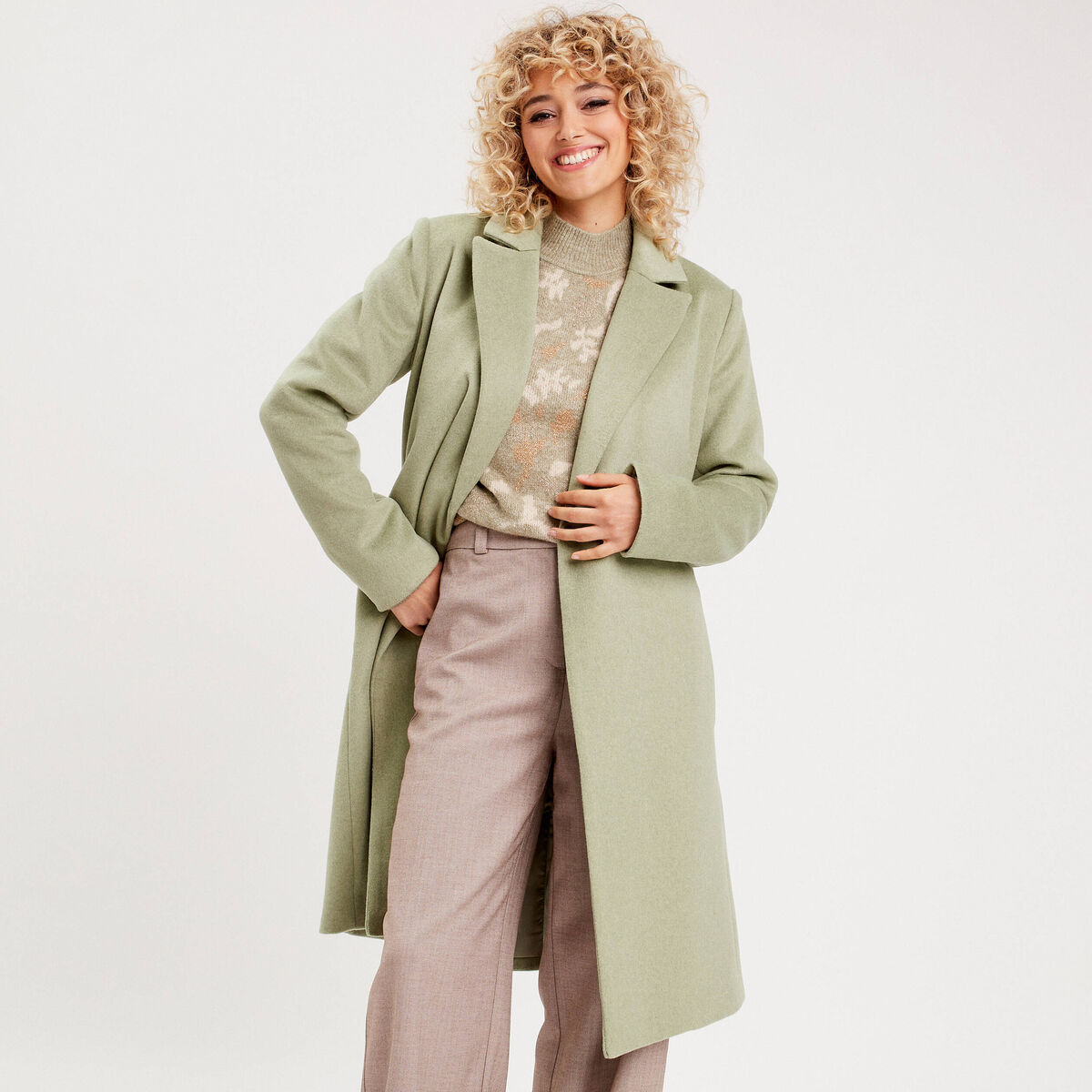 Manteau droit mi-long en bouclette beige femme