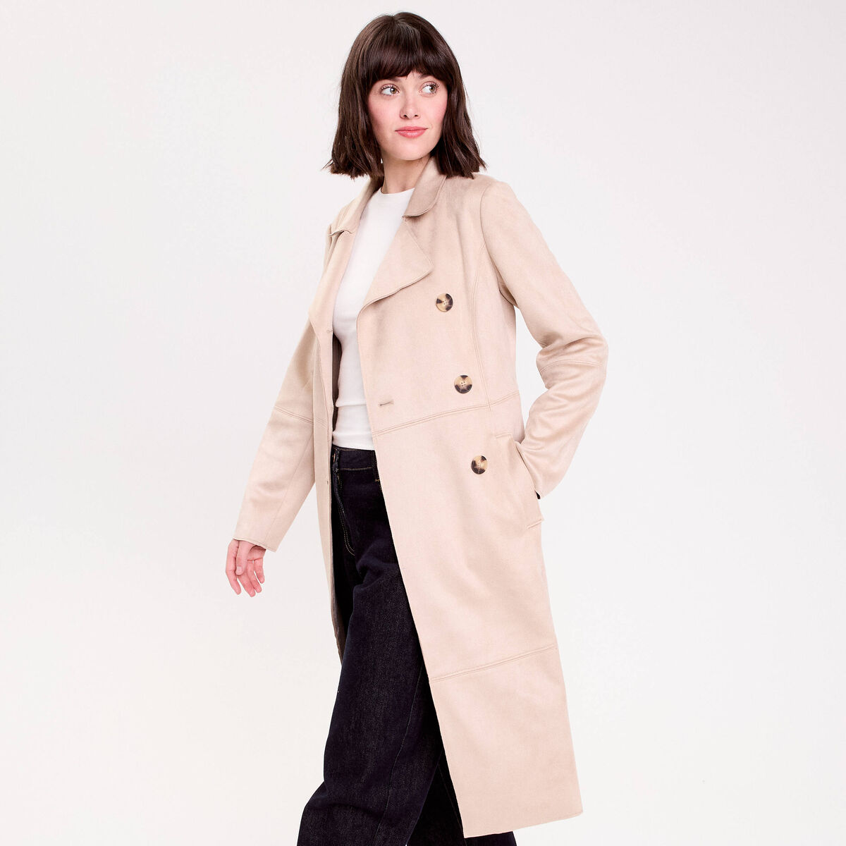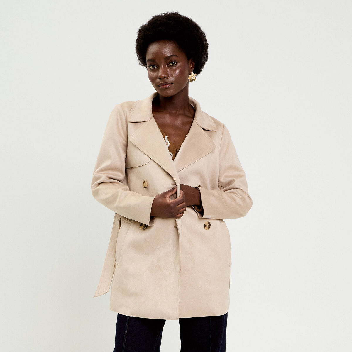 Trench suédine ceinturé beige femme