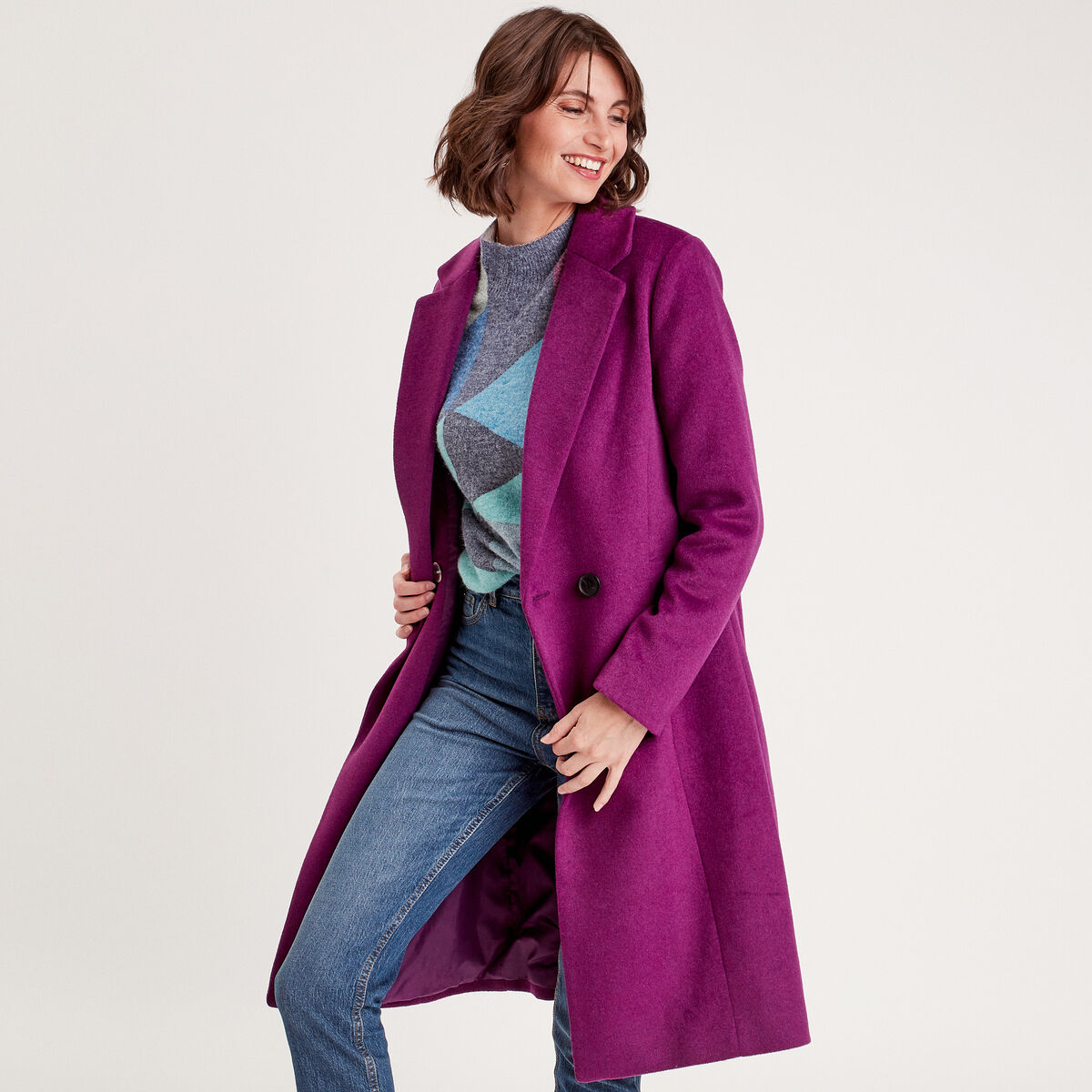 Manteau cintré boutonné violet foncé femme