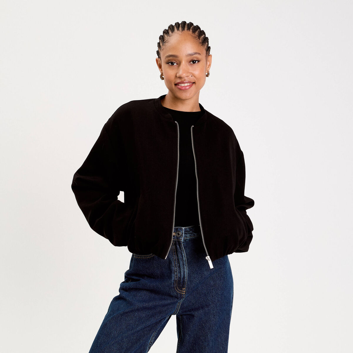 Bomber court bas resserré noir femme