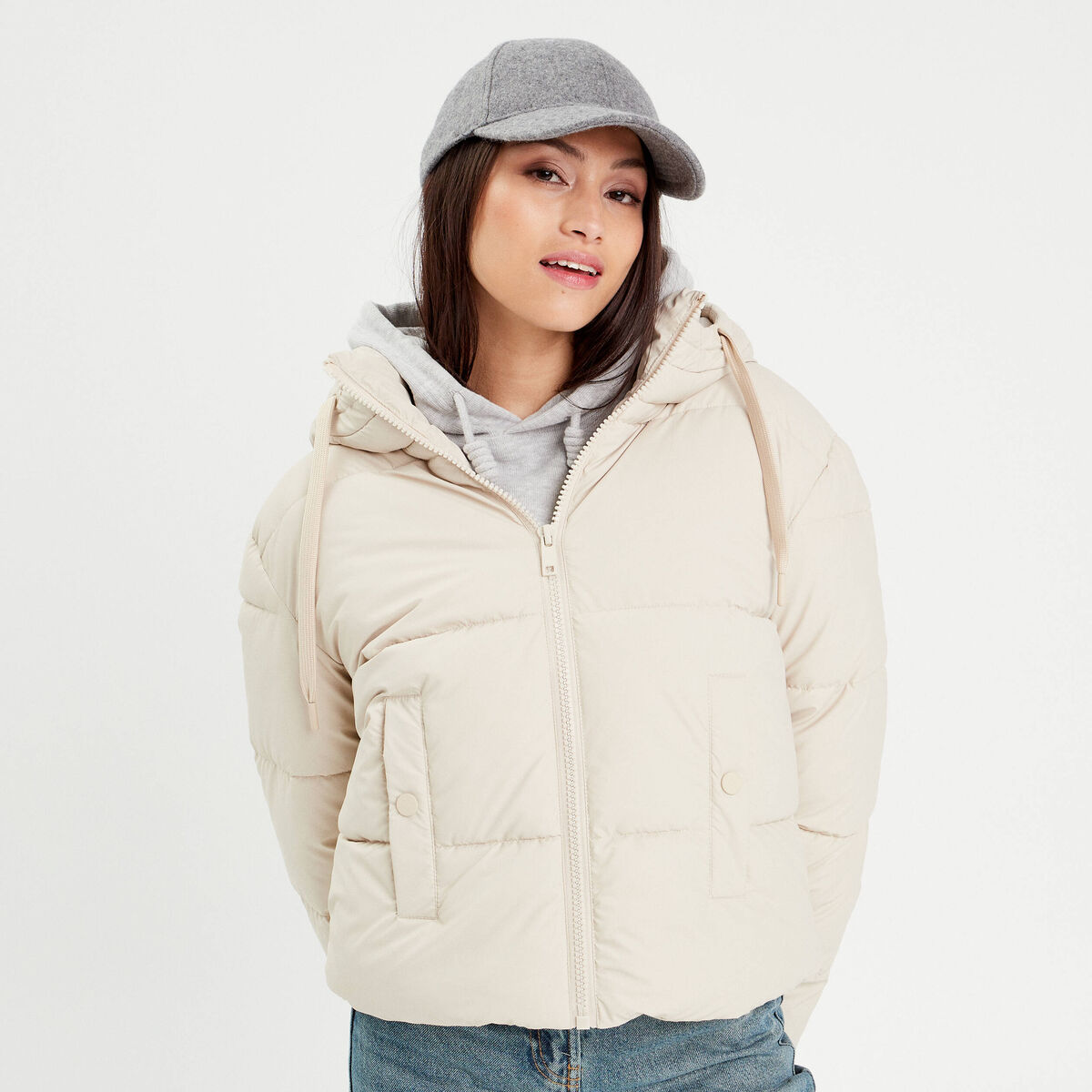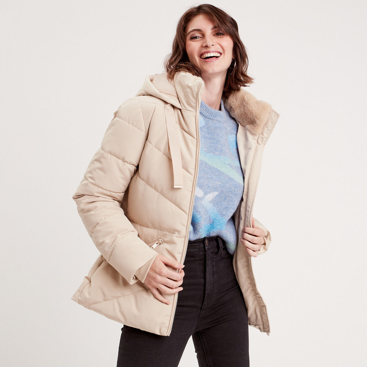 Doudoune courte à capuche ivoire femme