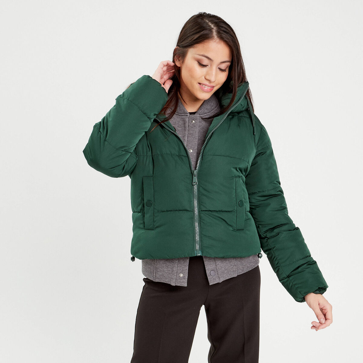 Doudoune droite zippée vert foncé femme