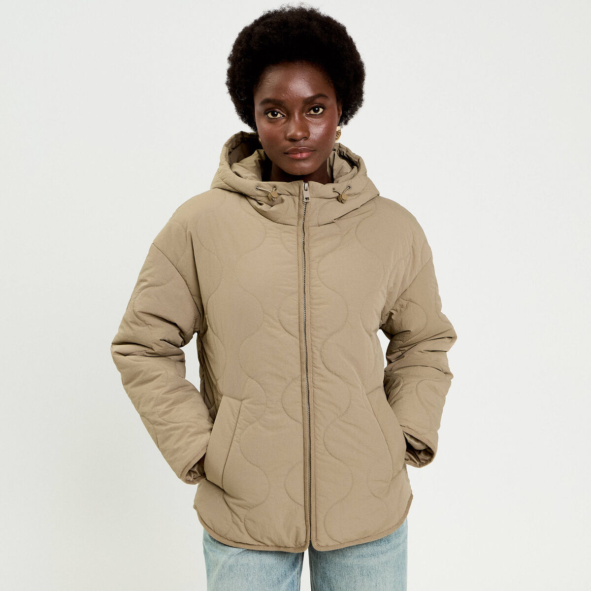 Doudoune cintrée à capuche sable femme