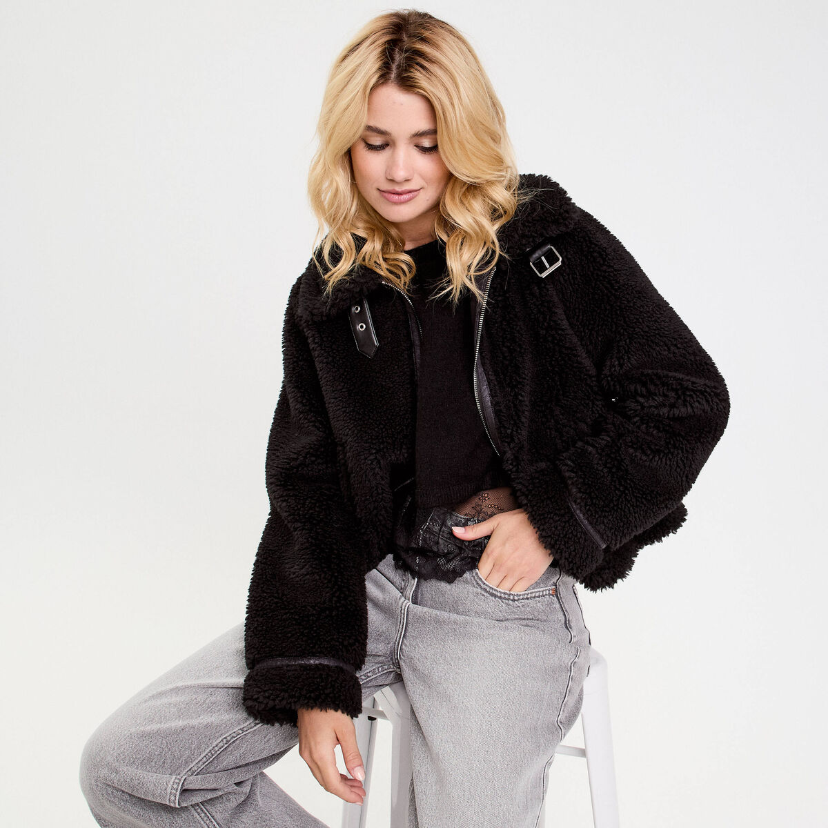 Bombardier fausse fourrure noir femme
