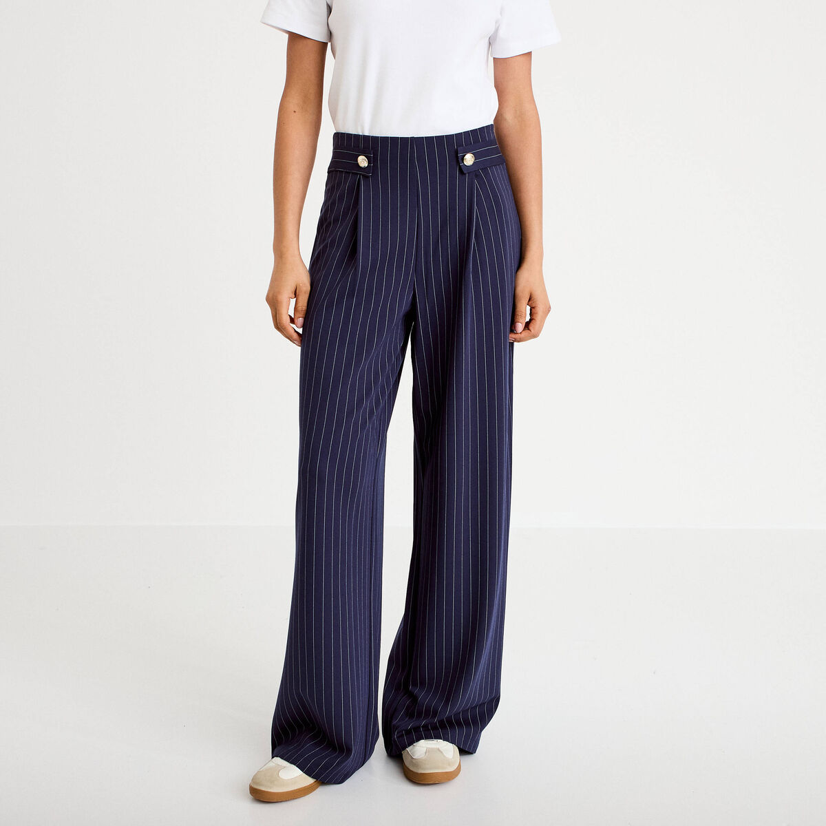 Pantalon bootcut taille haute fluide bleu foncé femme