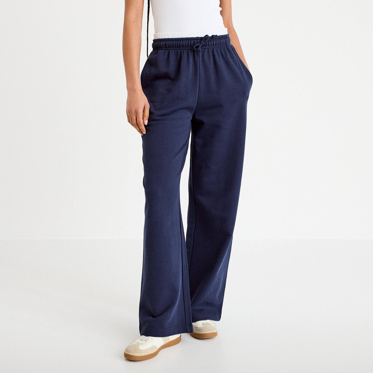 Pantalon large style jogging bleu marine femme