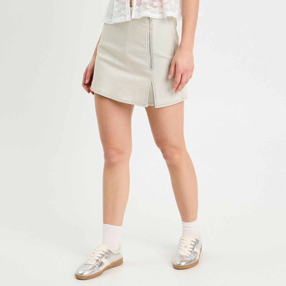 Jupe-short trapèze en jean denim bleach femme