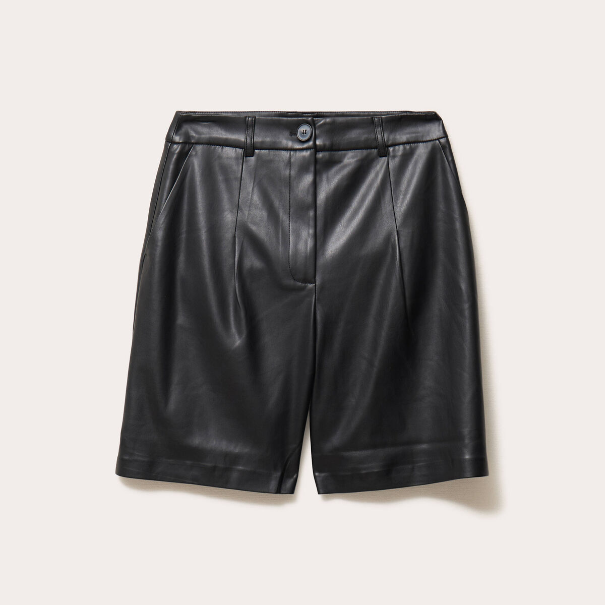Bermuda regular en similicuir noir femme
