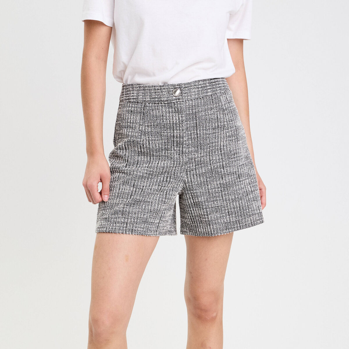 Short regular en tweed gris femme