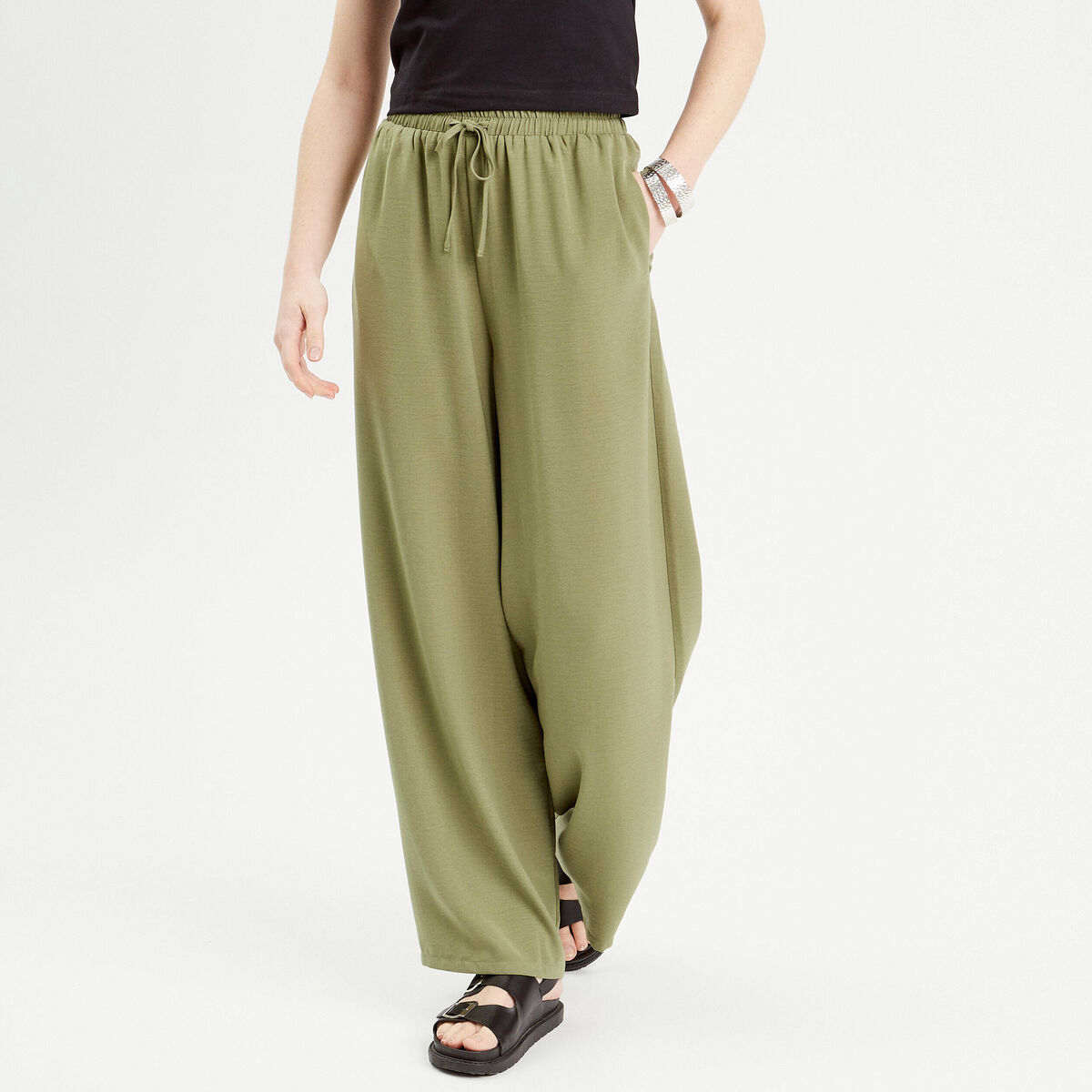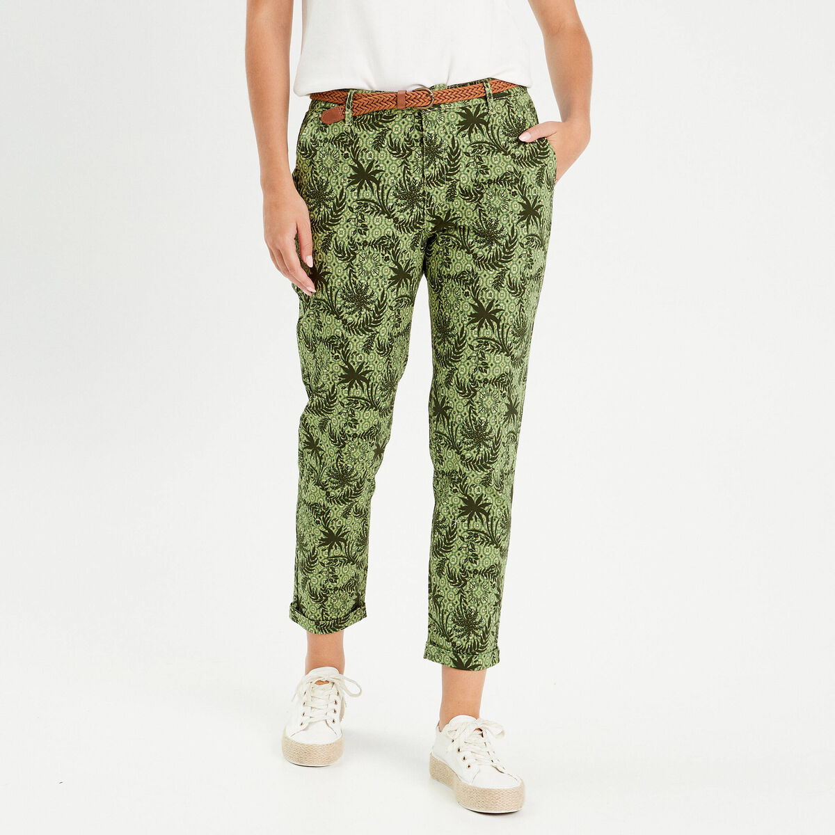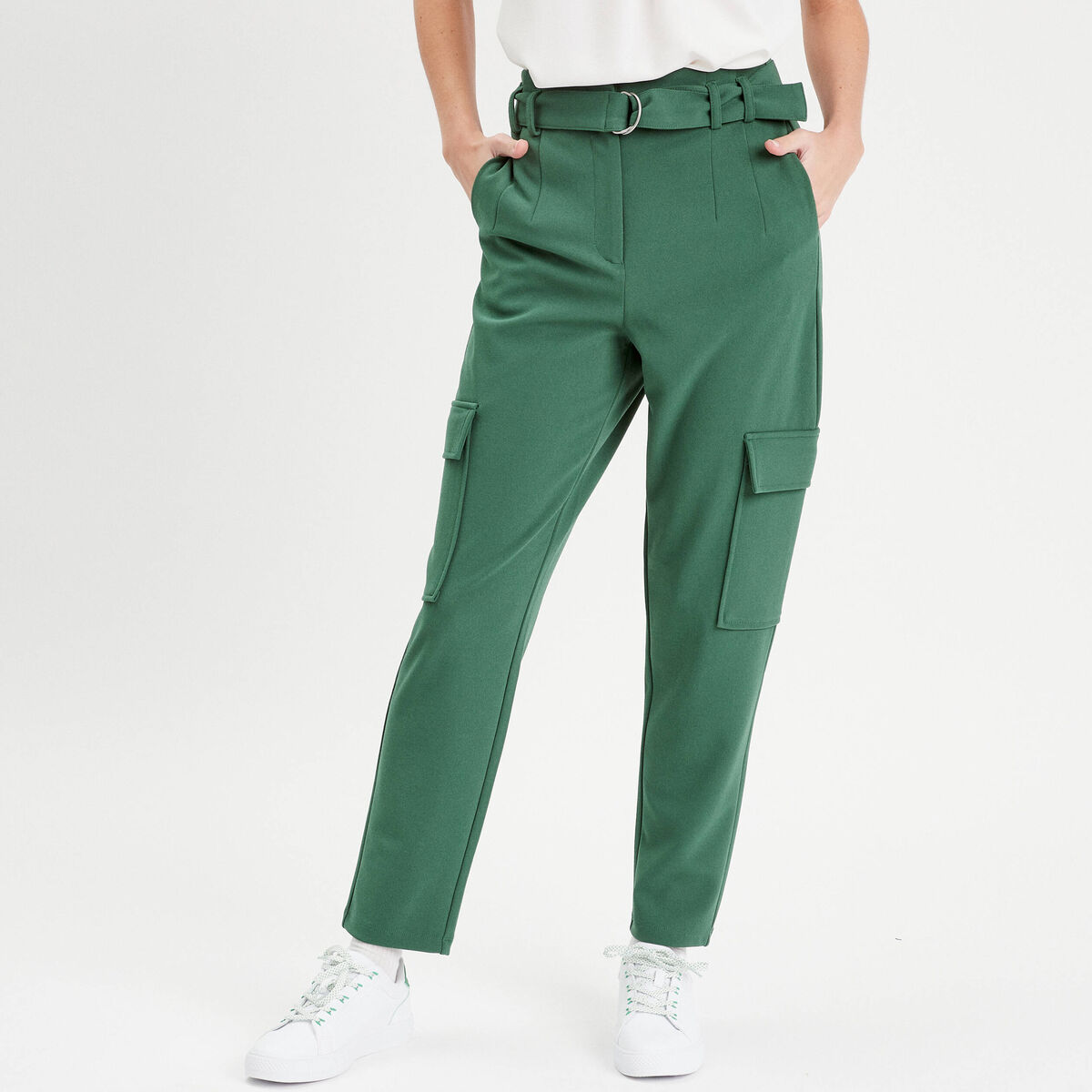 Pantalon cargo 7/8ème ceinturé vert foncé femme
