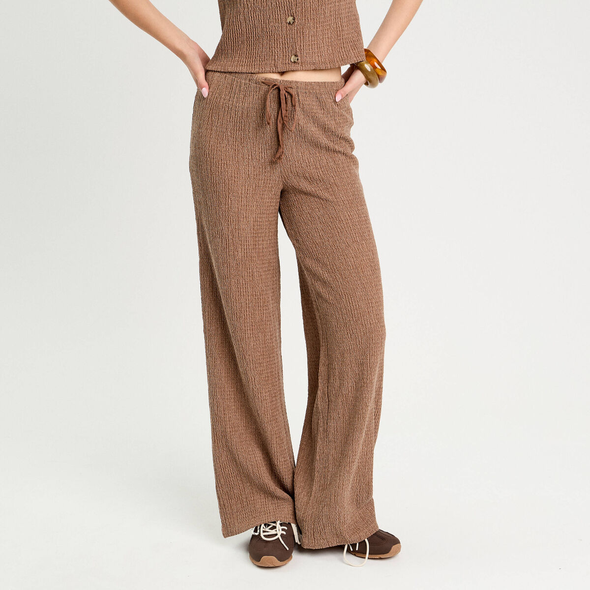 Pantalon large marron femme