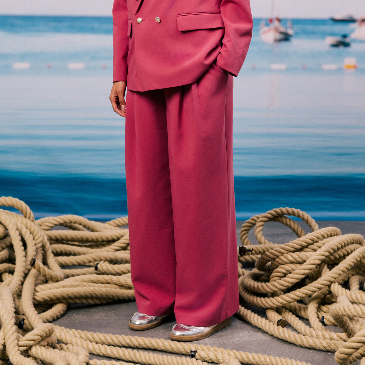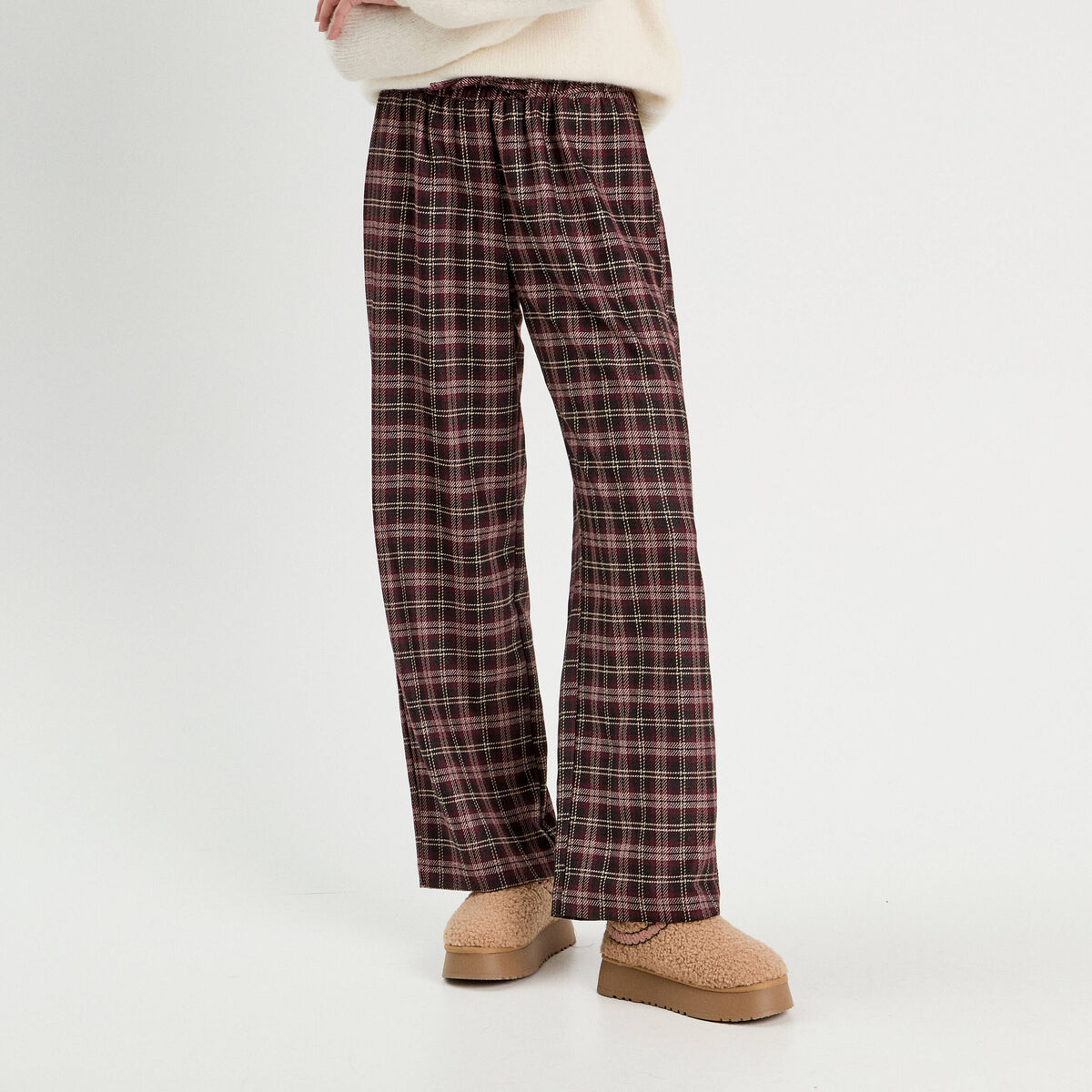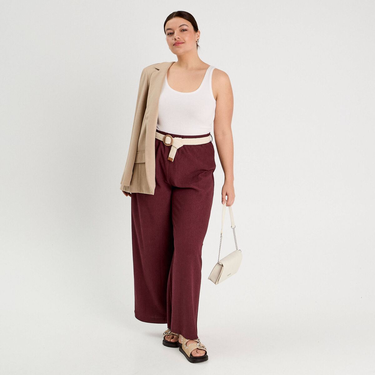 Pantalon large bordeaux femme